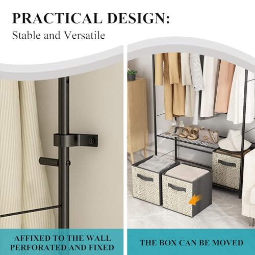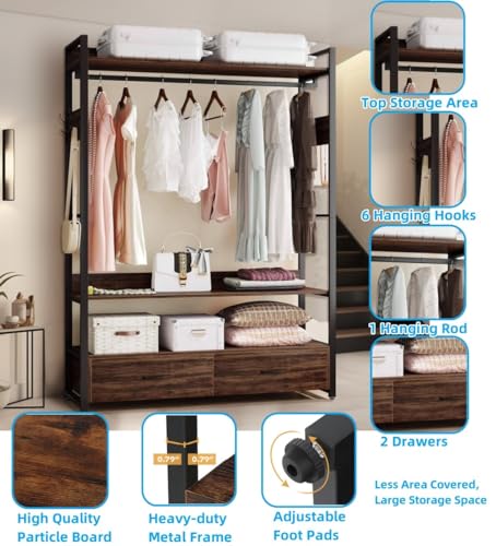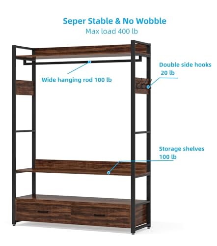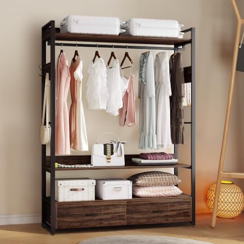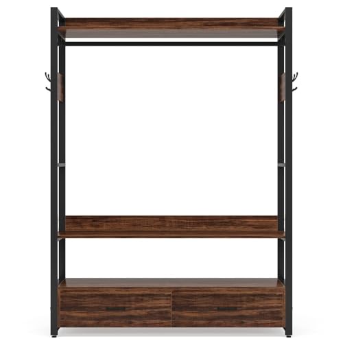 Clothes Rack with Drawers, Clothes Rack with Shelf and Hanging Rod, Freestanding Closet Organizer, Industrial Hall Tree Garments Rack for Entryway, Bedroom