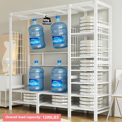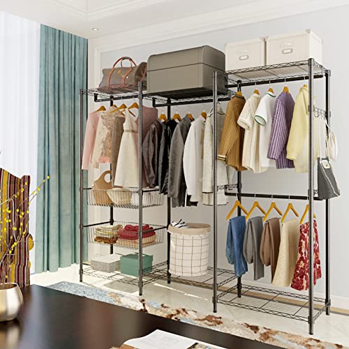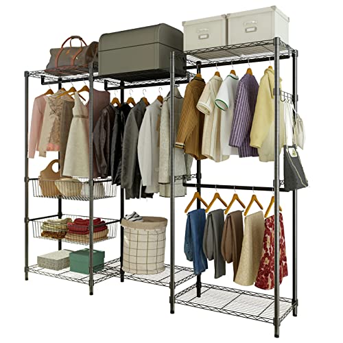 Karl home 70.8" H Wire Garment Rack with 2 Basket, Freestanding Metal Clothes Rack Heavy Duty Closet Organizer, Adjustable Clothing Wardrobe with 4 Hanging Rods 6 Shelves Compact Organization System
