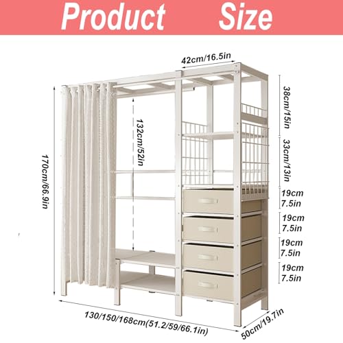 Foldable Clothing Rack with With 4 Drawers And 6 Shelves, Portable Closet Wardrobe, Heavy-Duty Metal Clothes Organizer Rack With Cover, Garment Rack for Cloakroom/Bedroom, Loads 1200LBS (150cm/59in)
