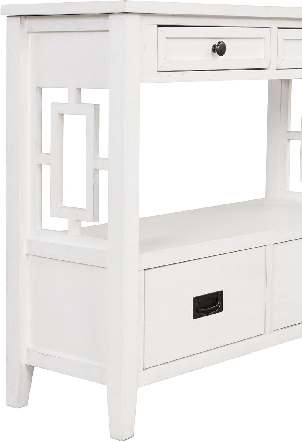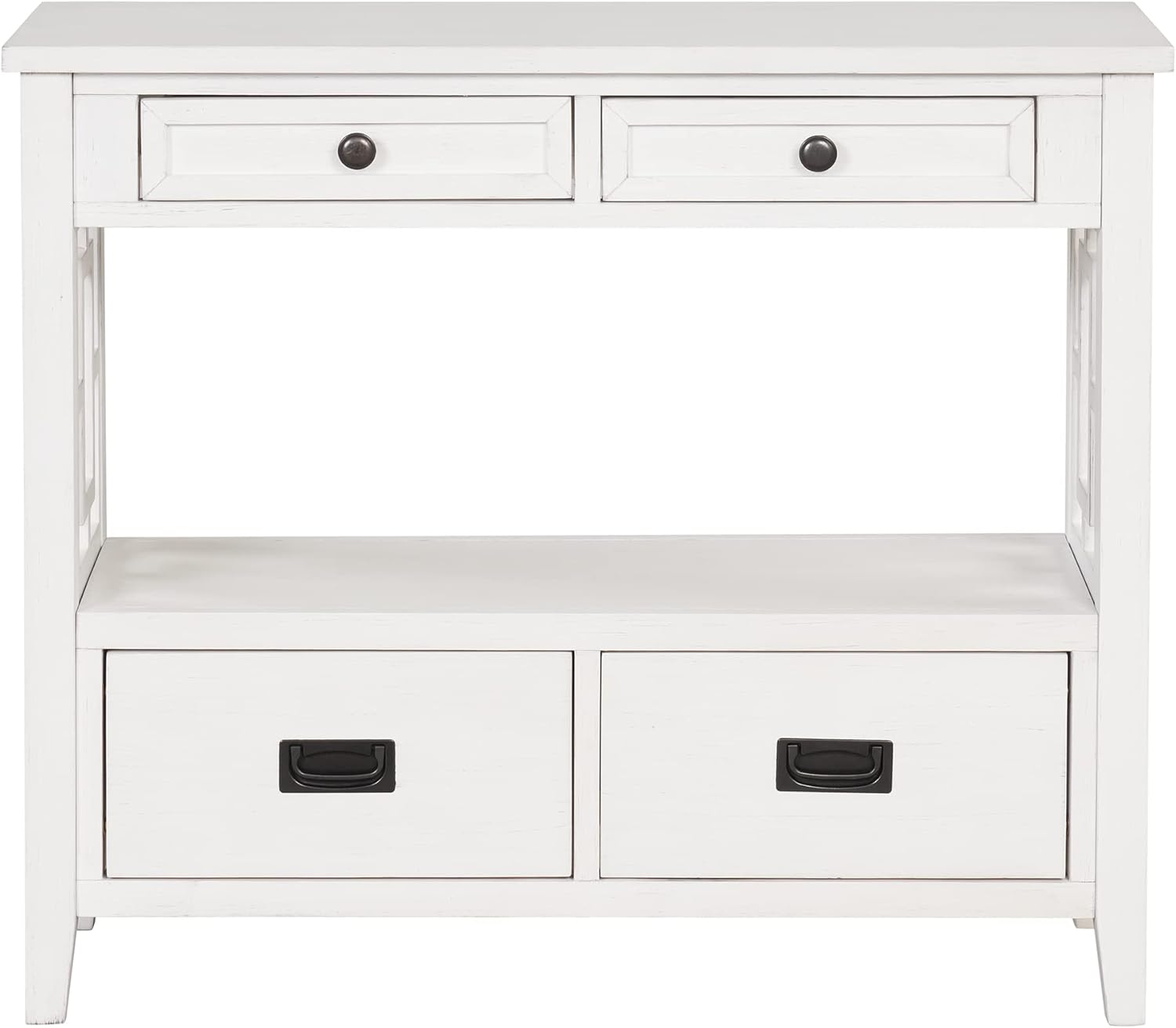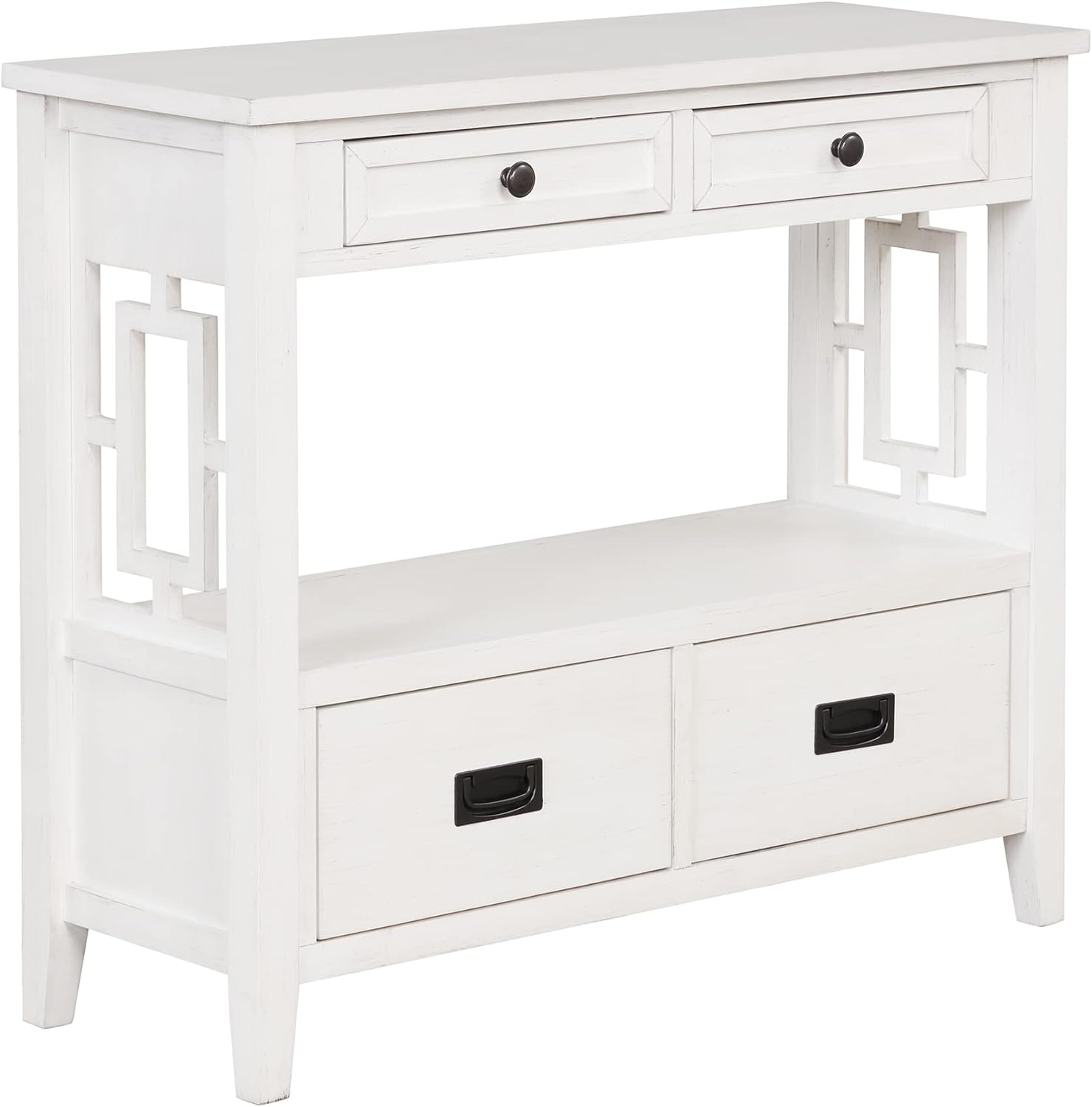 36'' Farmhouse Pine Wood Console Table Entry Sofa Table with 4 Drawers & 1 Storage Shelf for Entryway Living Room Bedroom Hallway Kitchen (Antique White)