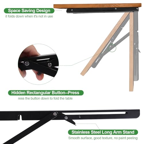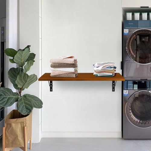 Wall Mounted Folding Table, 39 Inch Fold Down Table for Laundry Room, Natural Pine Wood Folding Workbench Drop Leaf Table Floating Wall Desk for Small Space, Kitchen/Bar/Bedroom, 39"x19.7"