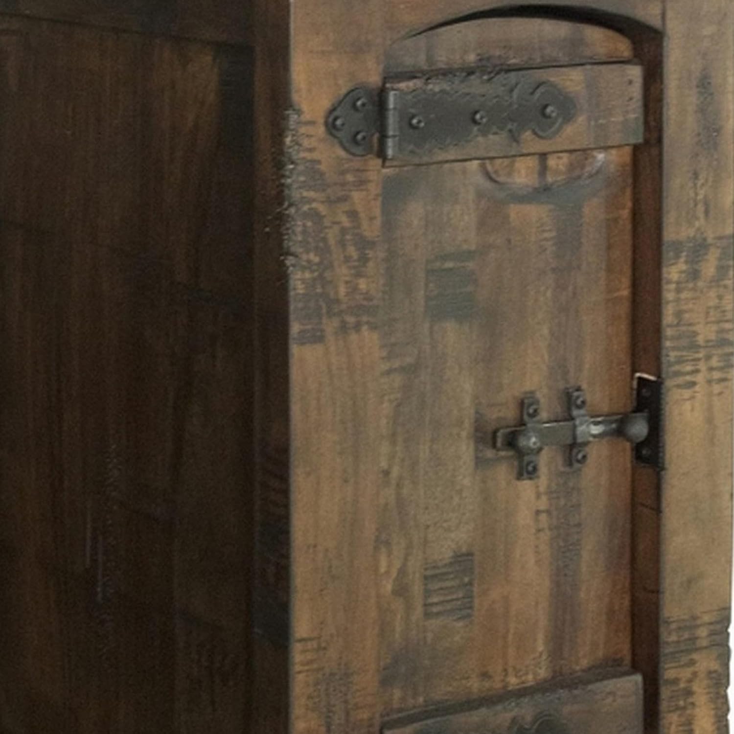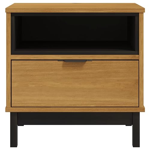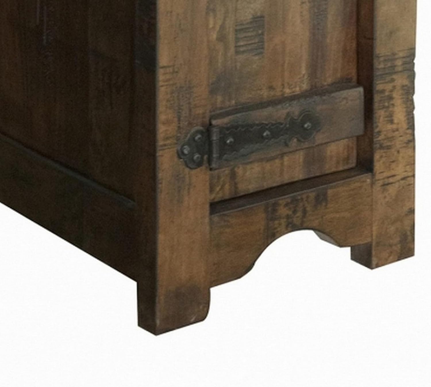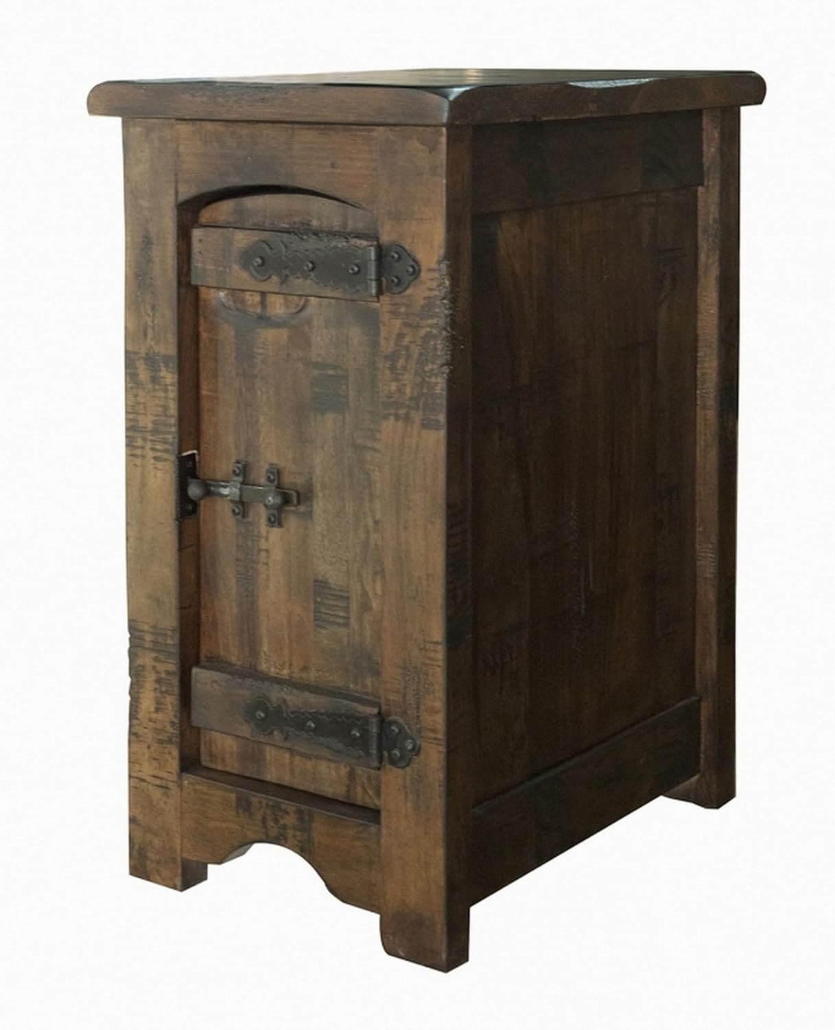 Benjara Exo 26 Inch Chairside End Table with 1 Door, Solid Pine Wood, Rustic Brown