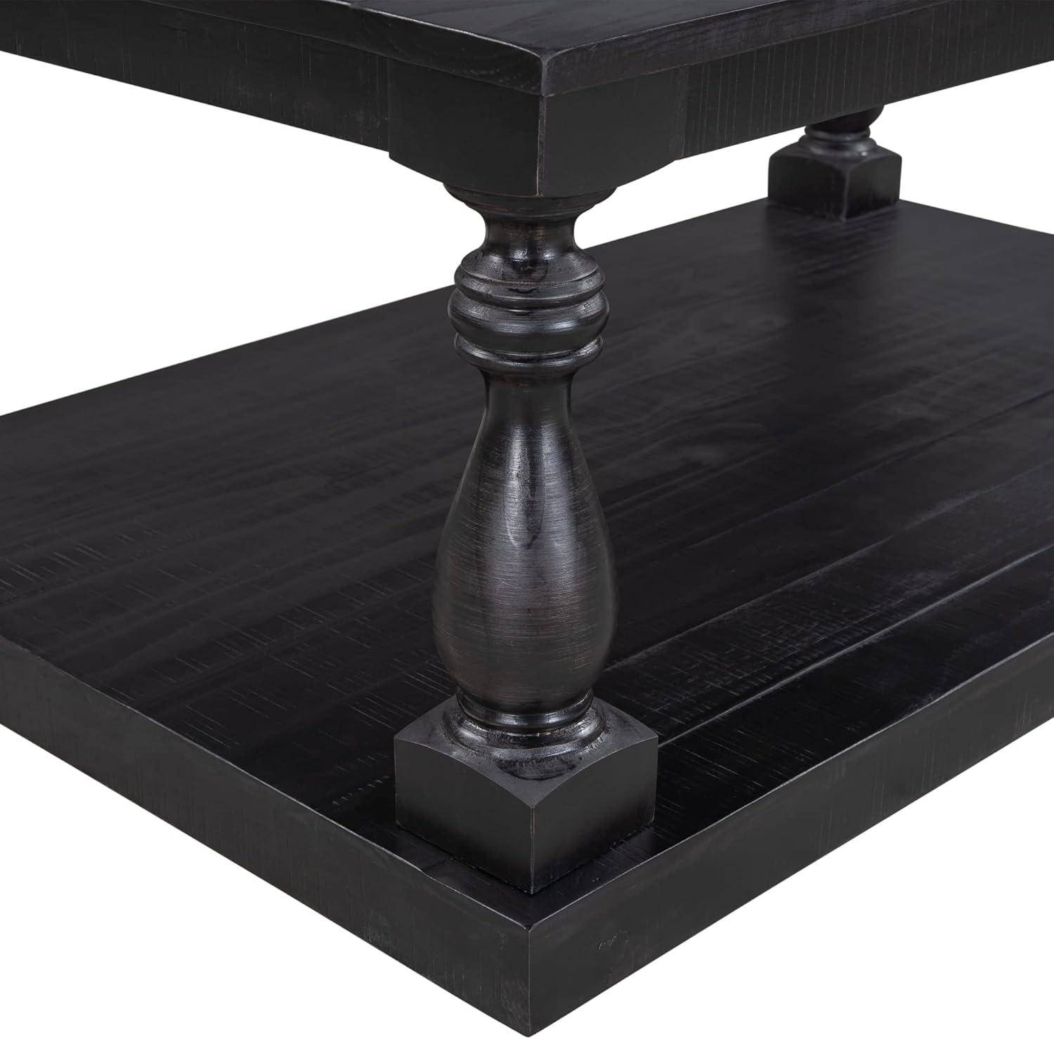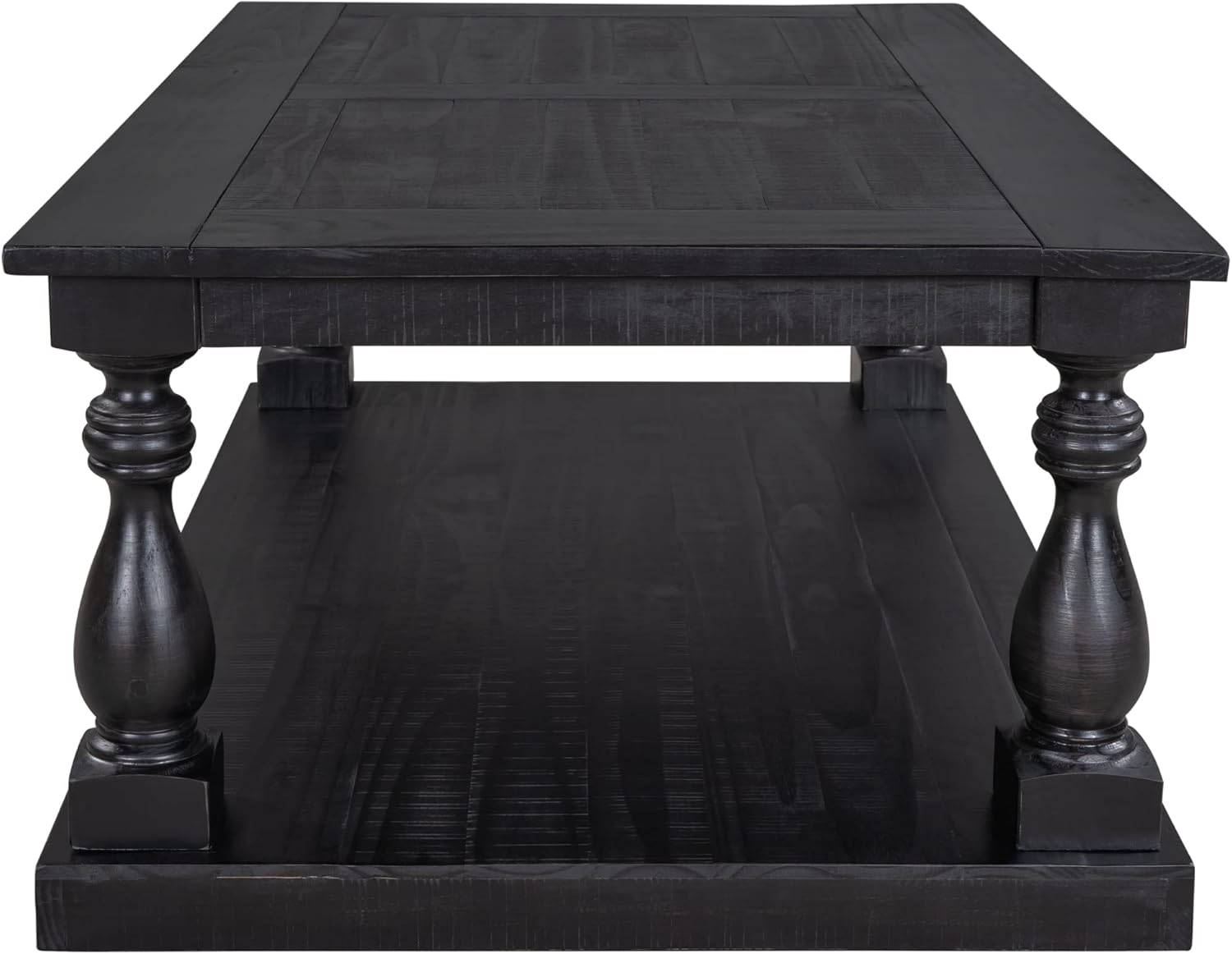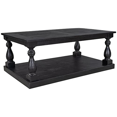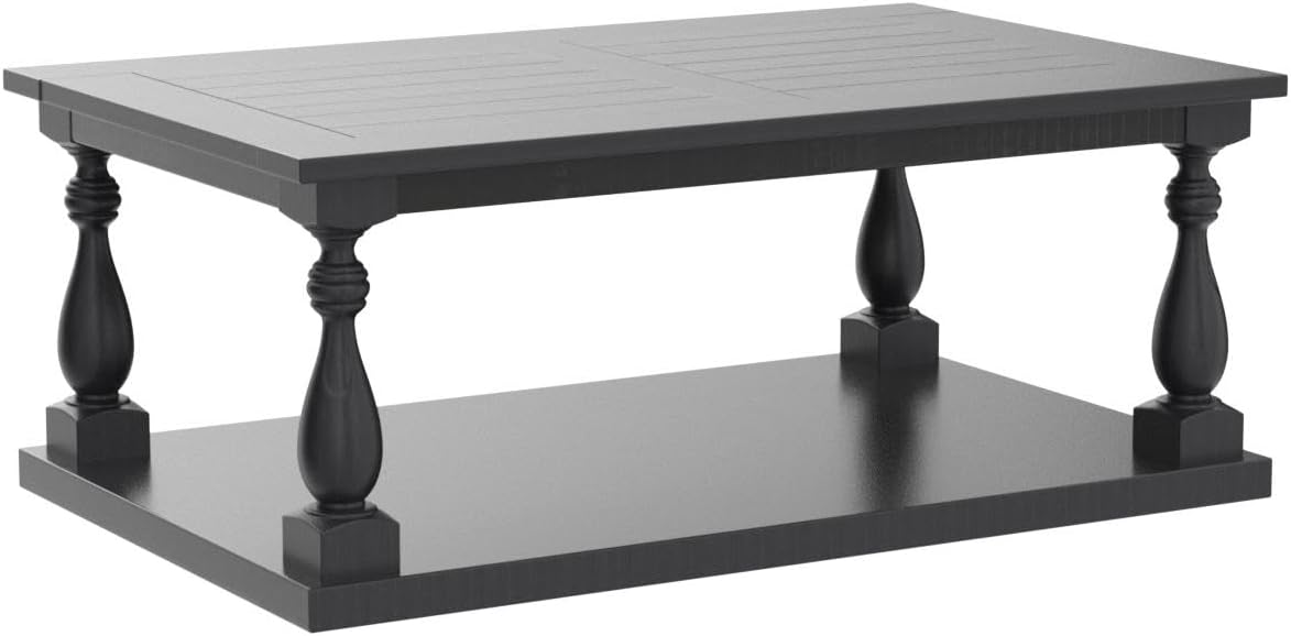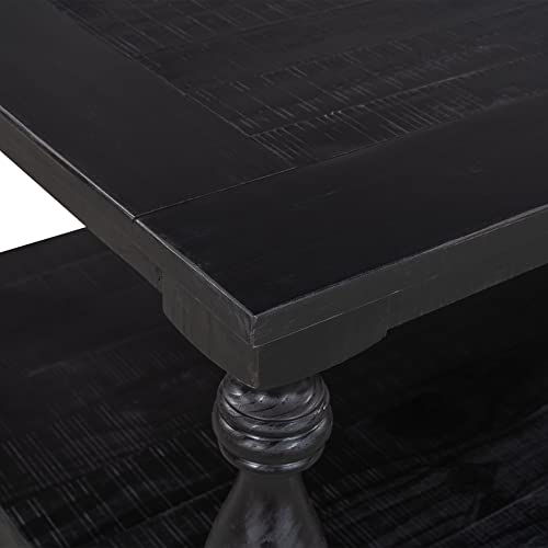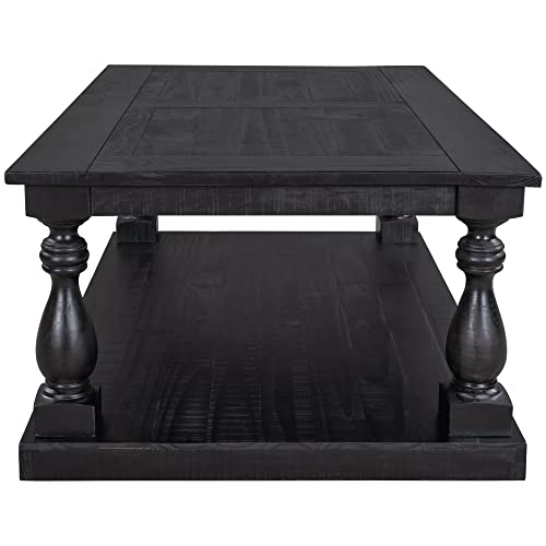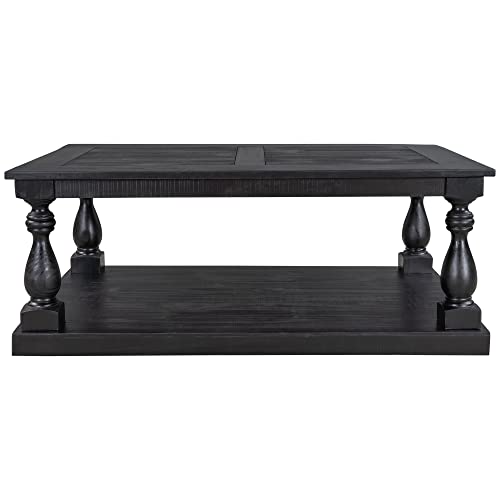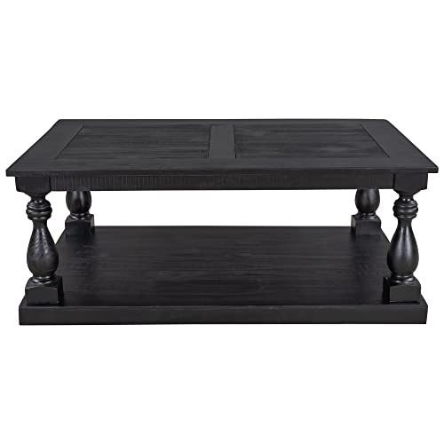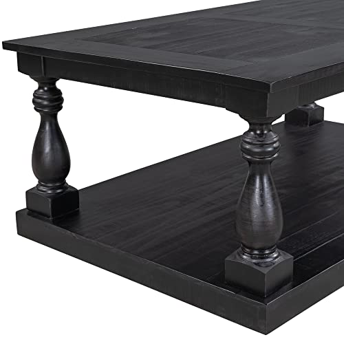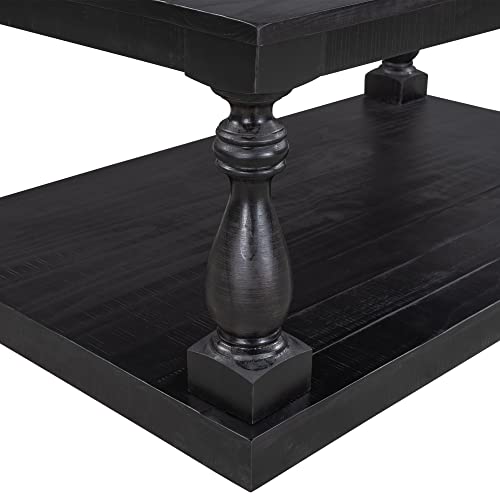 LZ LEISURE ZONE Rustic Floor Shelf Coffee Table Farmhouse Rustic with Storage Shelf for Living Room,Solid Pine Wood,Black