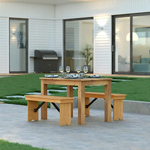 EMMA + OLIVER Pacia 46" x 30" Rectangular Solid Pine Farm Dining Table in Light Natural