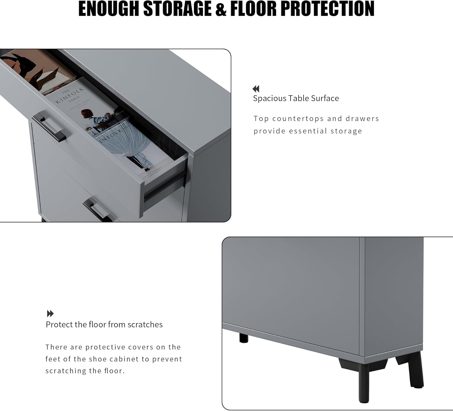 2 Flip Entryway, Wood Thin Drawer, Modern Front Entry Rack, Free Standing Organizer for Doorway Hallway (Gray), 32" 43" Slim Hidden Shoe Storage Cabinet