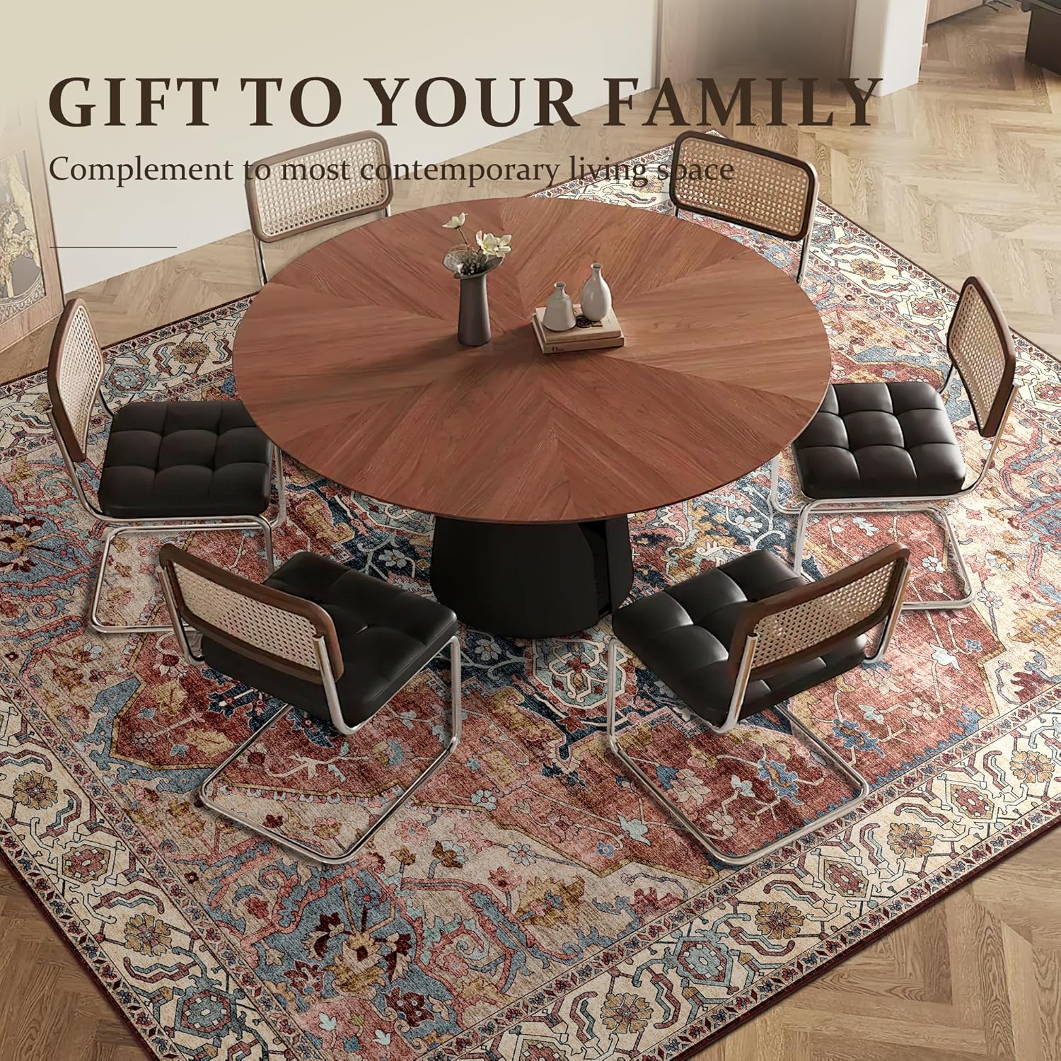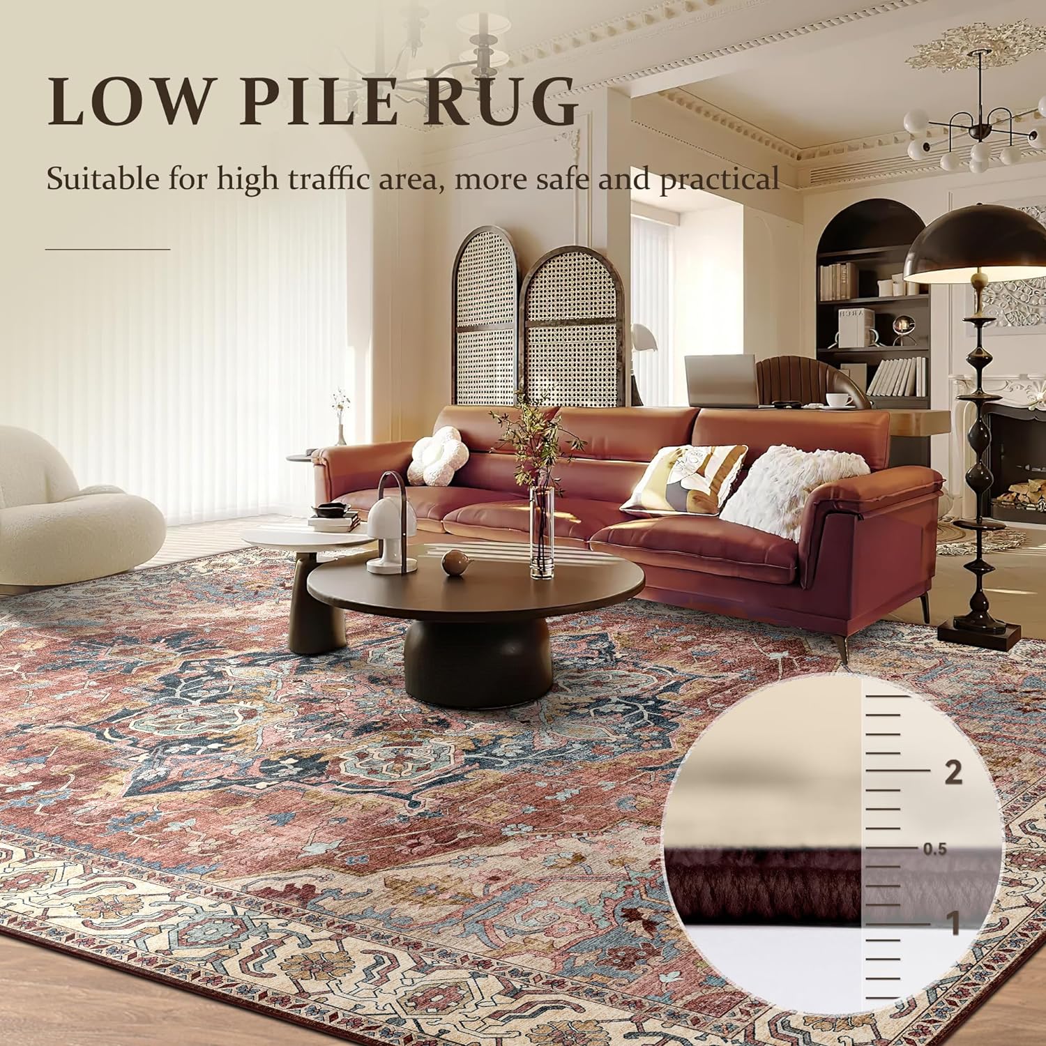 Boho Area Rug 8x10 Large Rug for Living Room Bedroom Office Kitchen Dining Room Non-Slip Soft Low-Pile Vintage Rug Bohemian Washable Large Rugs for Bedroom, Brickred