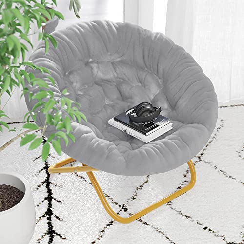 Flash Furniture Gwen 38" Oversize Portable Faux Fur Saucer Moon Chair with Folding Ottoman for Dorm and Bedroom, 2 Piece Set, Dusty Purple Fabric/Soft Gold Frame