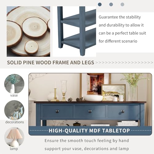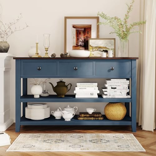 DDJ Entryway Table with 3 Drawers, Console Table with 2-Tier Open Shelves and Pine Solid Wood Frame, Entry Table with Storage for Entrance, Foyer, 16" D x 50" W x 30" H, Walnut