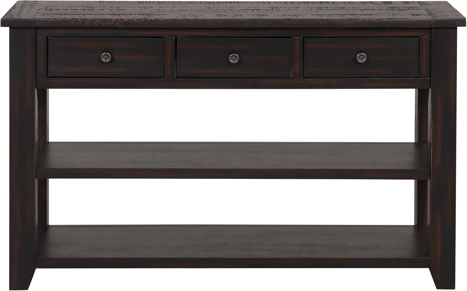 48'' Solid Pine Wood Top Console Table,Modern Side Table with 3 Storage Drawers and 2 Shelves,Entryway Table Sofa Table for Living Room,Entryway,Bedroom,Black