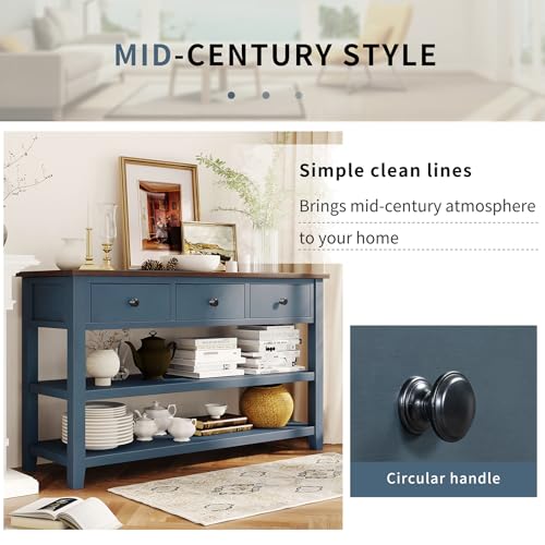 48'' Solid Pine Wood Top Console Table,Modern Entryway Sofa Side Table with 3 Storage Drawers and 2 Shelves for Entryway Hallway Living Room Bedroom Foyer,Easy Assembly (Black+48.82''L)