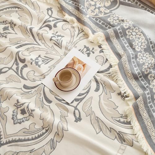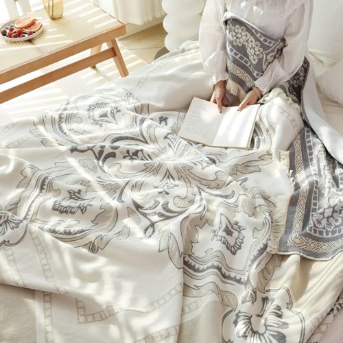ROOMLIFE Boho 100% Cotton Throw Blanket, 6-Layer Floral Bed Throw Blanket Farmhouse Bed Blankets All Season Rustic Throw for Couch Bed Living Room Decor Soft Cozy Furniture Protector,80"*90"