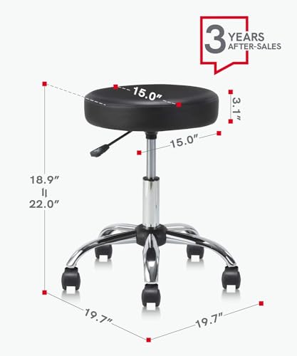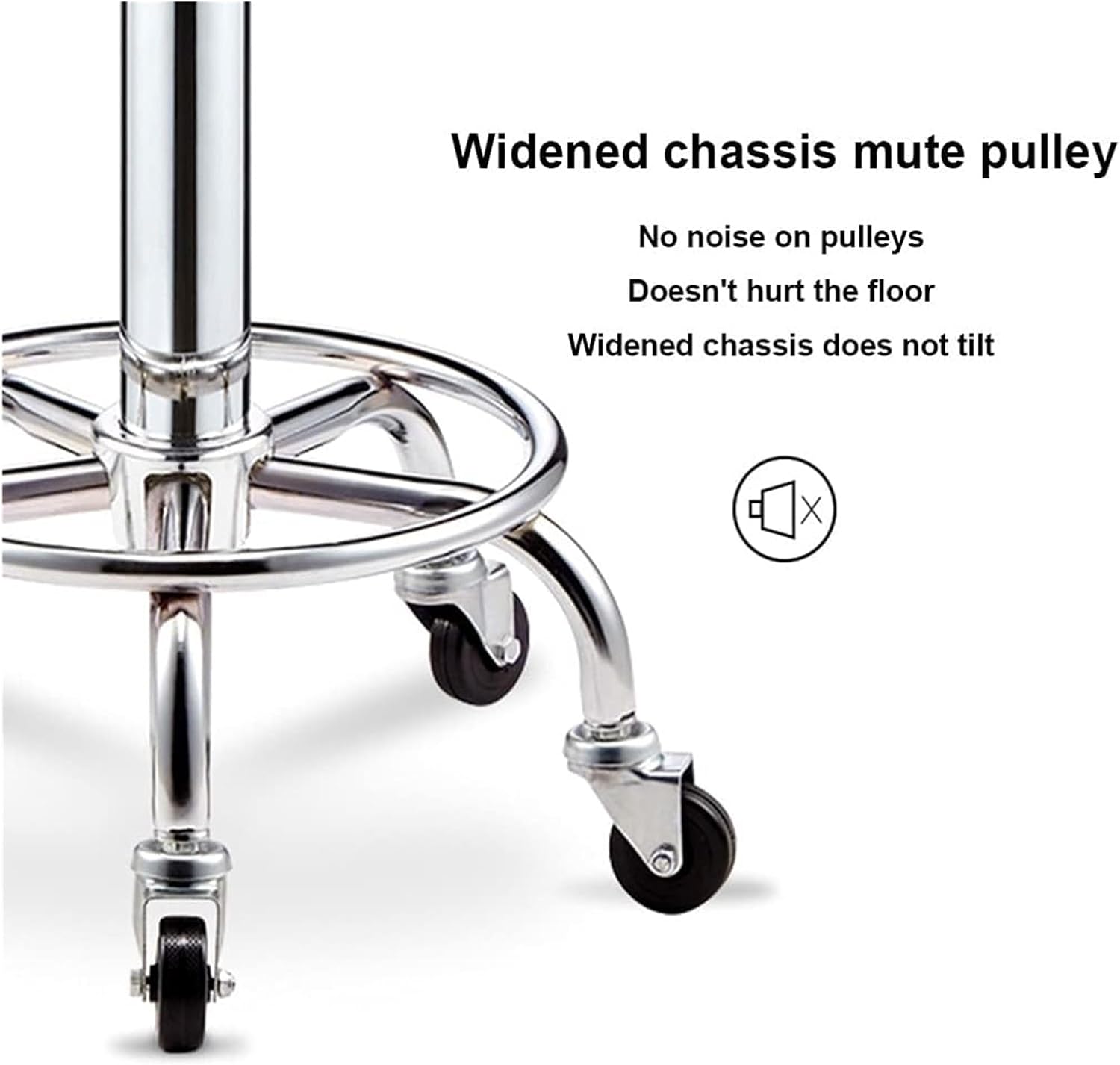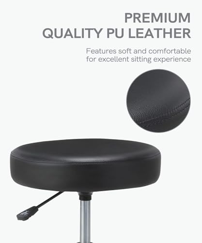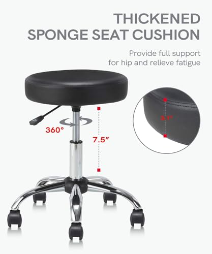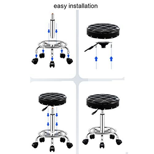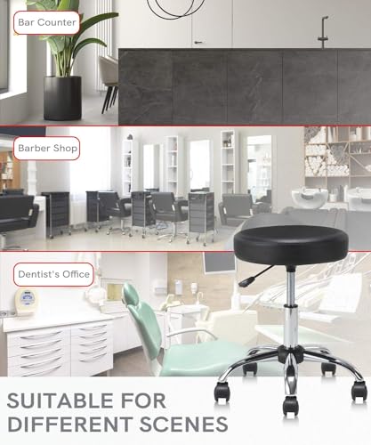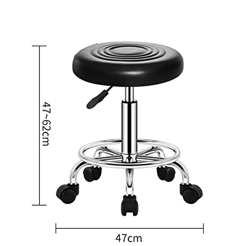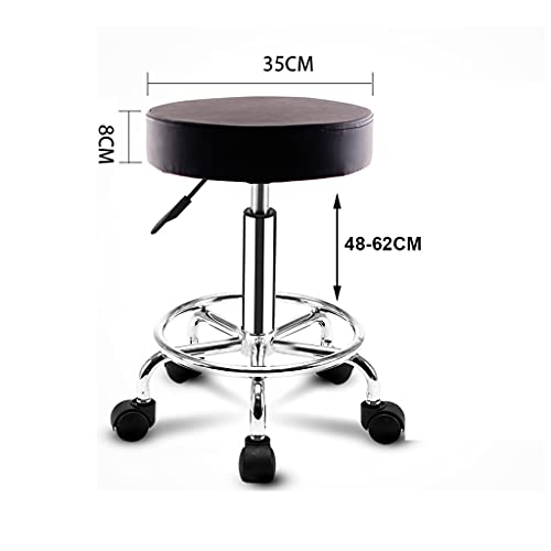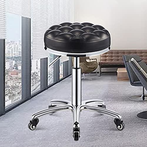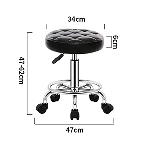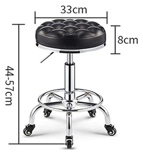 Round Rolling Stool Beauty Stools Chair Adjustable Height Chrome Steel Bar Stool Round Cushion, Salon Rolling Stool Swivel Chair On 5 Wheels, PU Leather Counter Stools Shop Work Stool with