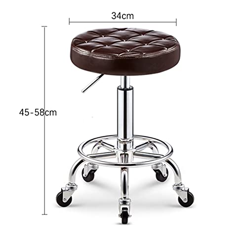 Rolling Stools Rotating Stool Adjustable Height Chrome Steel Bar Stool Round Cushion, Salon Rolling Swivel Chair On 5 Wheels,Leather Counter Stools Adjustable