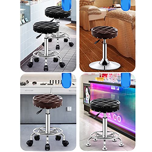 PU Leather Rolling Swivel Bar Stool On 5 Wheels, Counter Stools with Soft Thick Sponge,Massage Salon Spa Facial Stool, Adjustable Height Stool Shop Stool with Footre A(A)