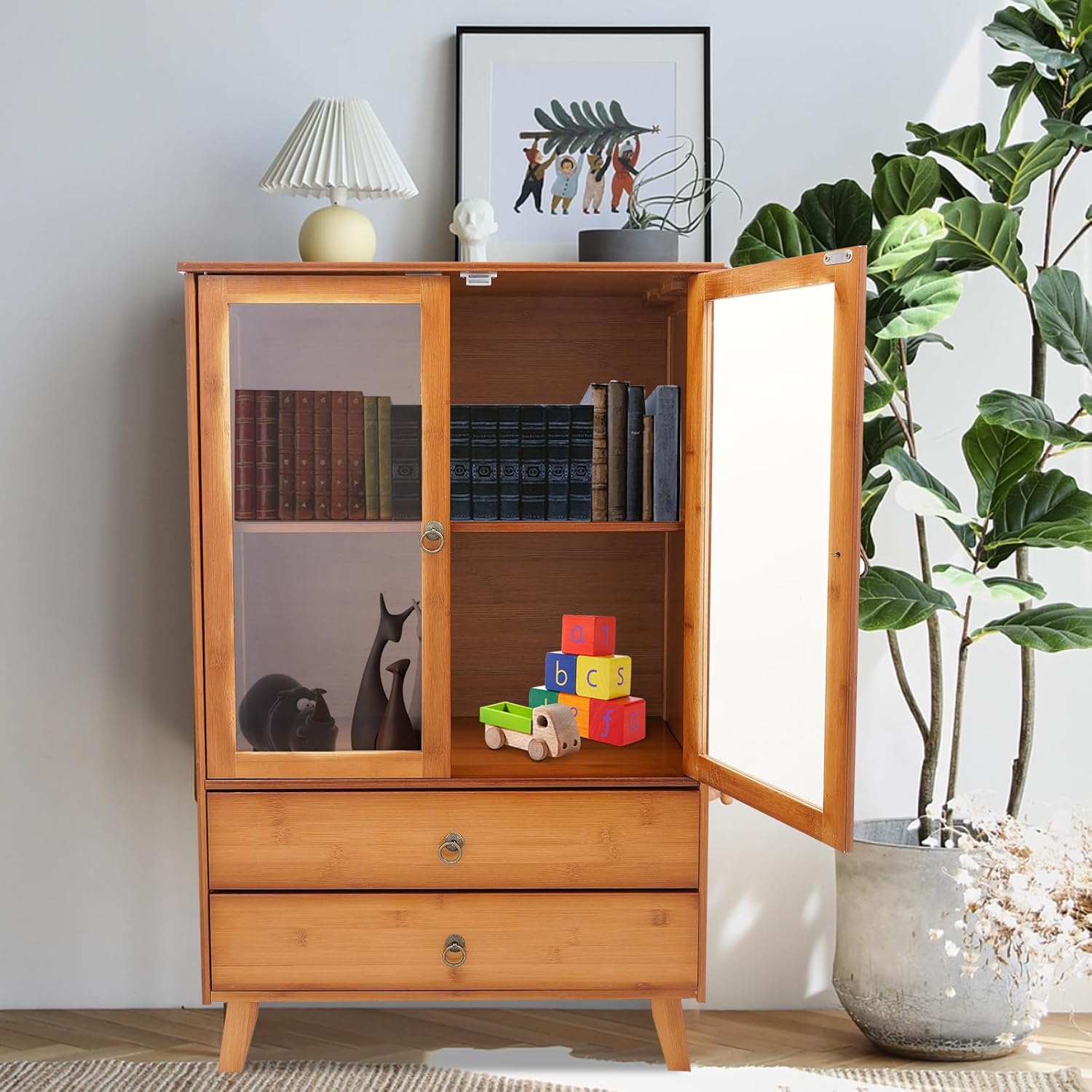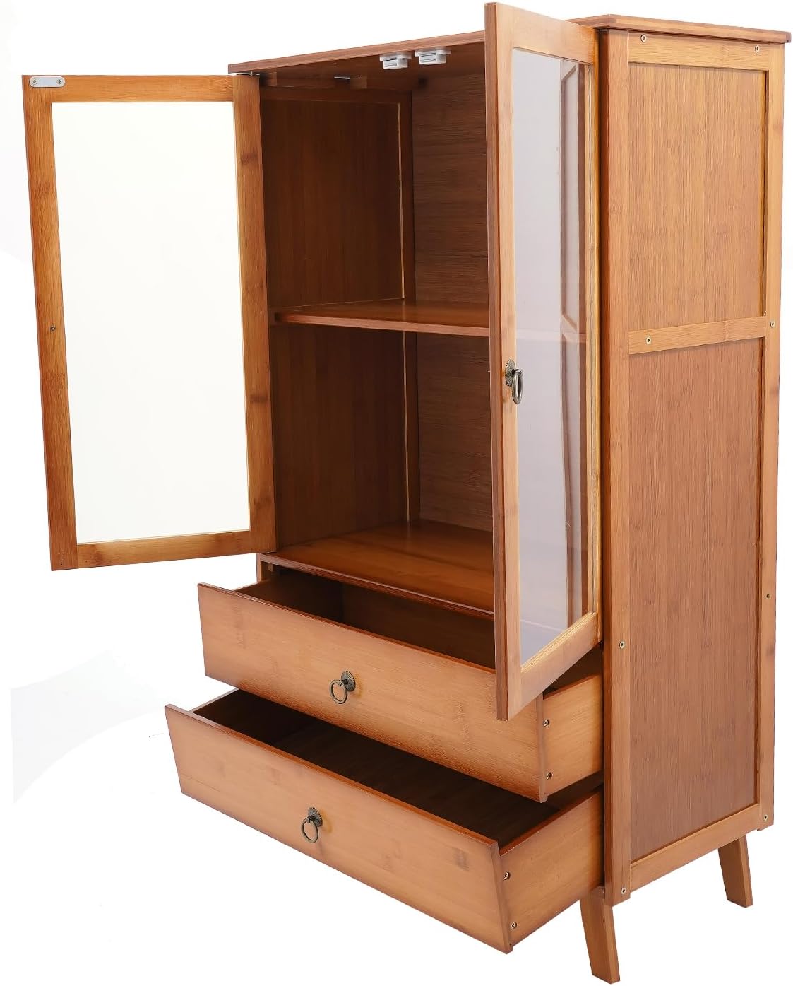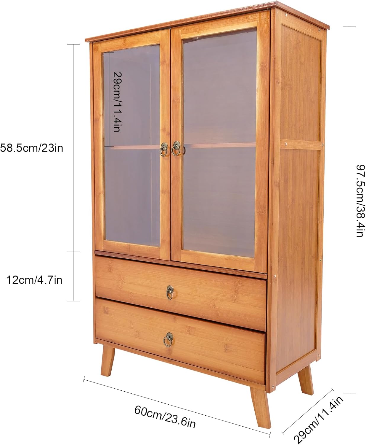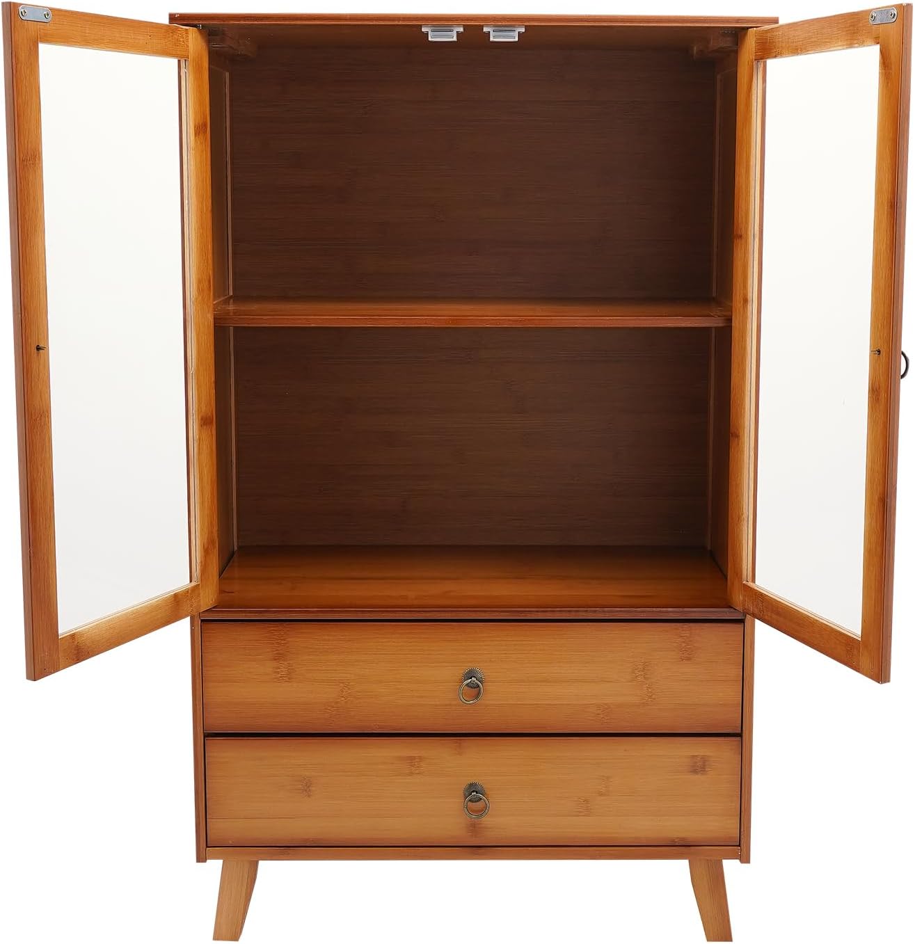 Natural Kitchen Sideboard, Bamboo Cupboard with Acrylic Door and 2 Drawer, Freestanding Storage Organizer for Kitchen, Living Room, Coffee Bar, Bohemian Style