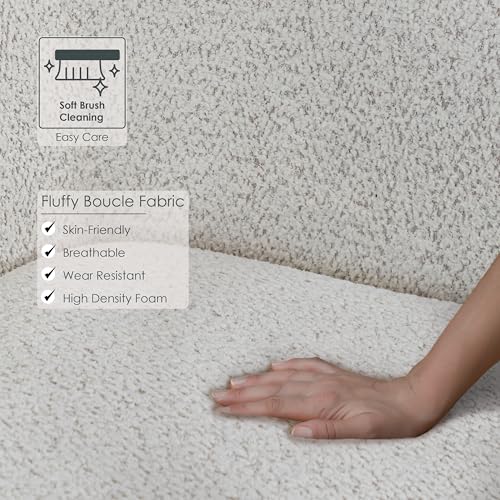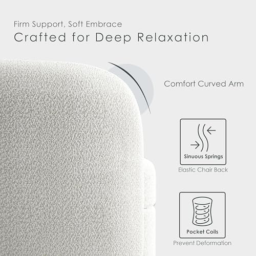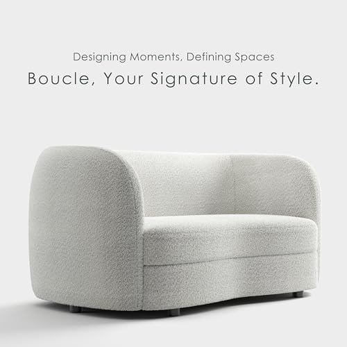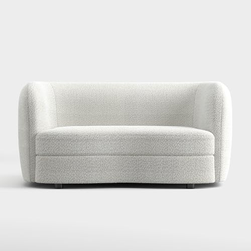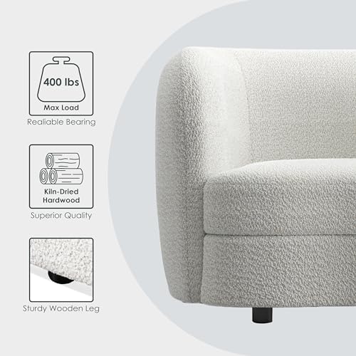 Furniture of America Nimiane Modern Boucle Curved Arms and Wooden Legs, Comfy Fabric Upholstered for Living Room, Bedroom, Home Office, 1-Seat, Off-White