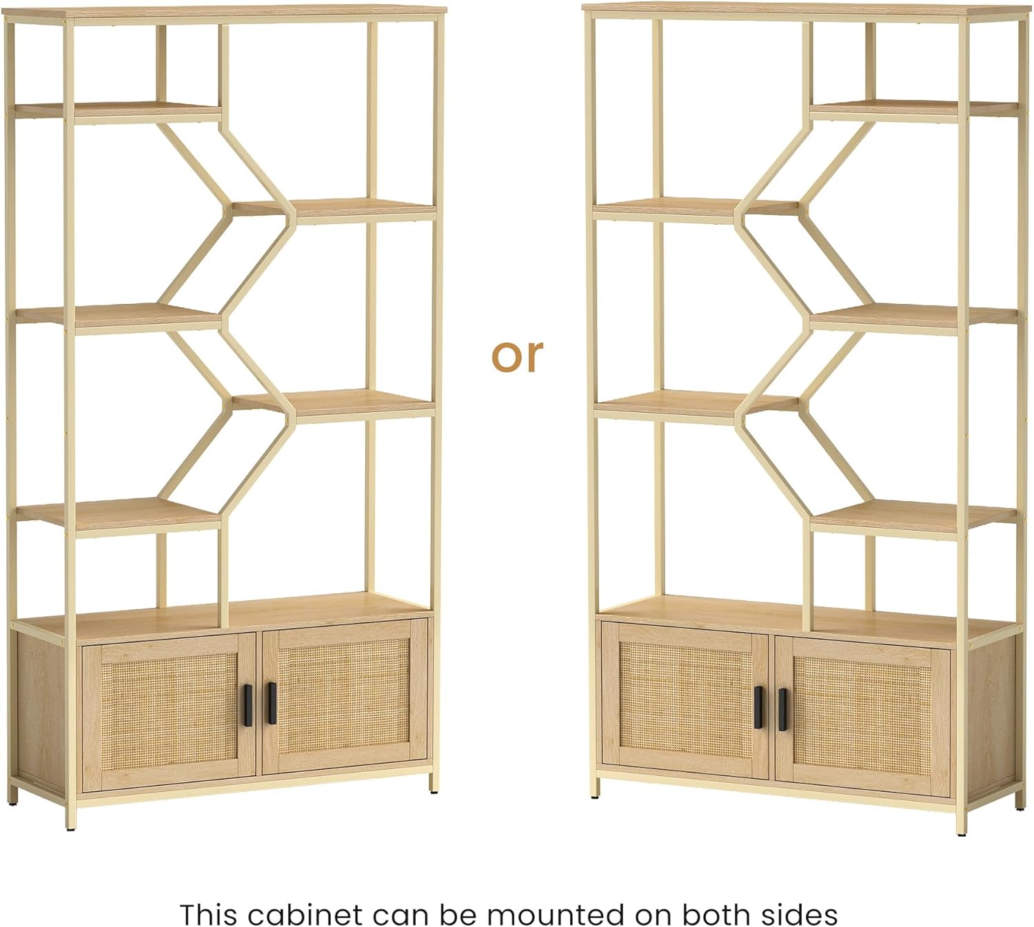 Stylish Bohemian Rattan Bookcase-7 Open Shelves and 1 Storage Cabinet,Storage Bookcase for Books,Cds,Rattan Furniture for Living Room/Home/Office