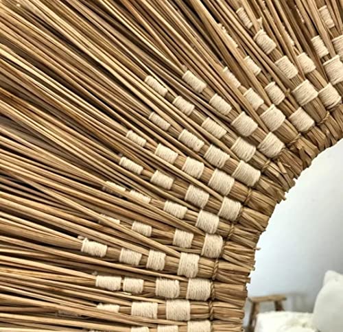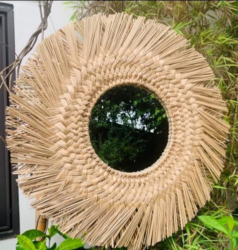 Ohilo Handmade Seagrass Bohemian Round Mirror Wall Hanging | Rattan Boho Decor for Living Room, Bedroom, Bathroom 70cm Overall Diameter, 30cm Mirror (Black)