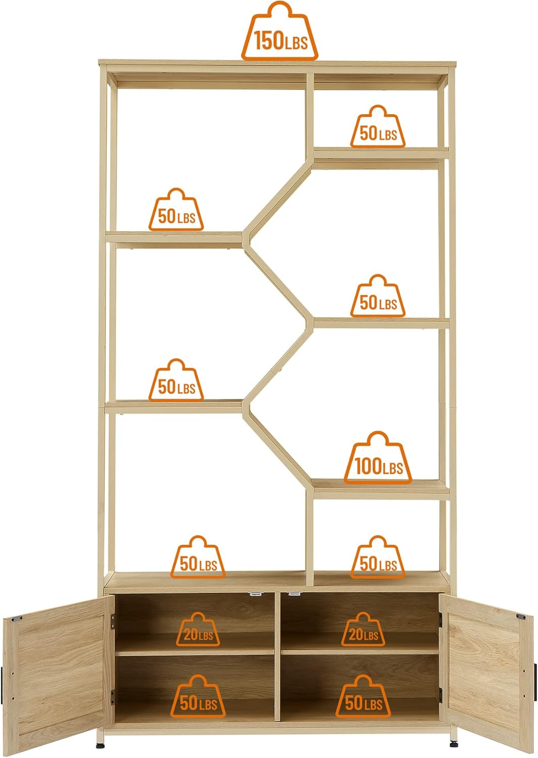 Sideboard Buffet Cabinet, Solid Wooden Storage Cabinet with Open Shelves, Accent Home Furniture, Bohemian Style Storage Cabinet for Living Room 75.75” Lx15.5” Wx35.25” H