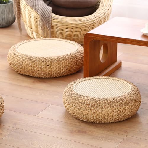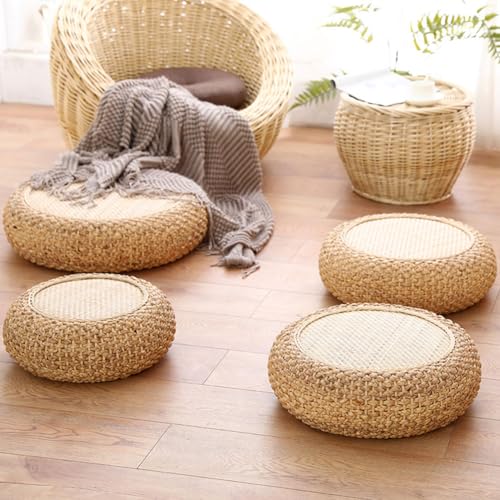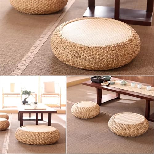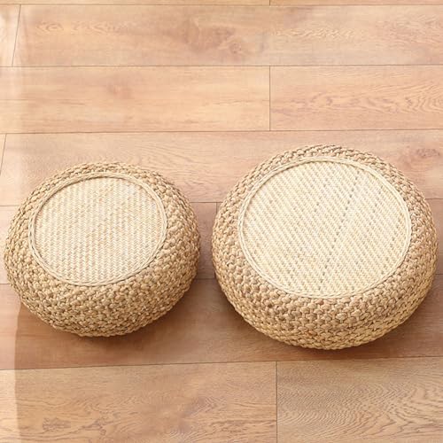 Round Straw Woven Seat Cushion, 15.7" Dia. x 6.7" H Floor Pouf Mat, Handmade Ottoman Footstool- Braided Natural Foot Rest, Bohemian Living Room Decor for Meditation, Zen,Yoga Practice