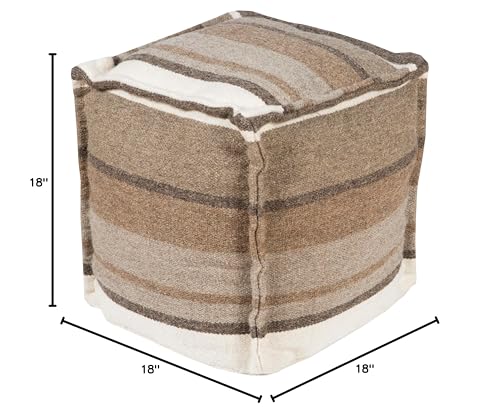 Mark&Day Pouf Ottoman, Ravelsbach Bohemian/Global Cream Cube Pouf Foot Rest for Living Room, Bedroom and Boho Home Decor (18"x18"x18")