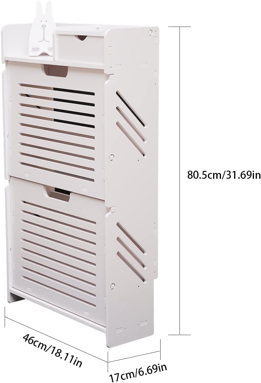 Shoe Storage Cabinet - 2 Flip Drawers Free Standing Shoe Rack 31.69in Tall White Wood Look Slim Shoe Organizer Cabinet Freestanding 8 Pair Shoe Rack Organizer for Entryway Hallway Bedroom