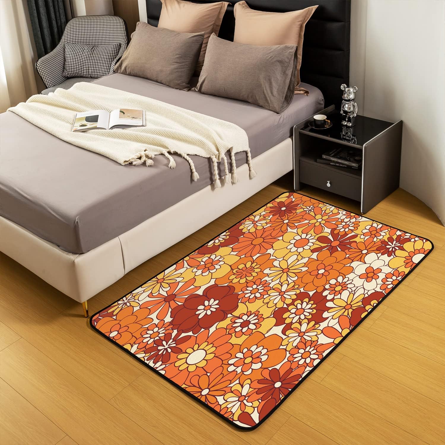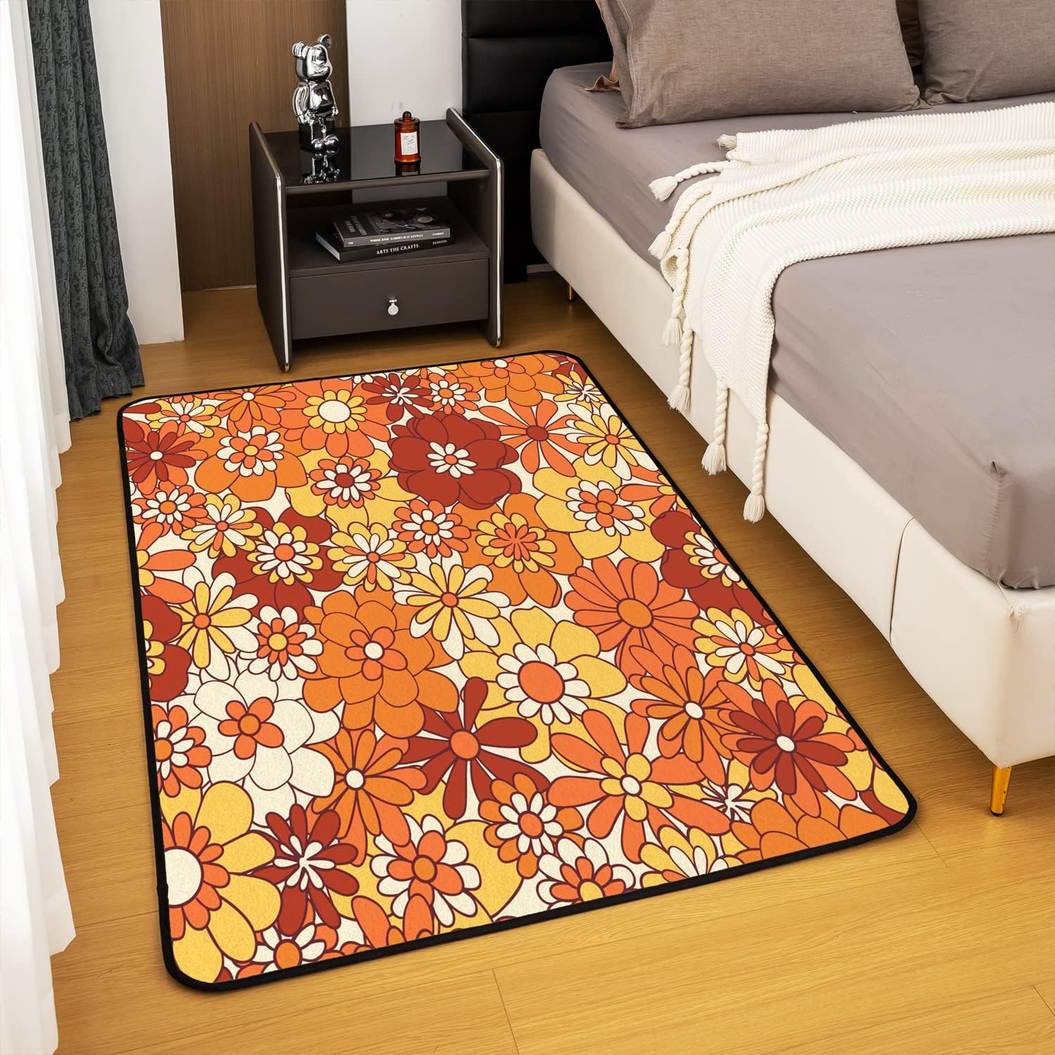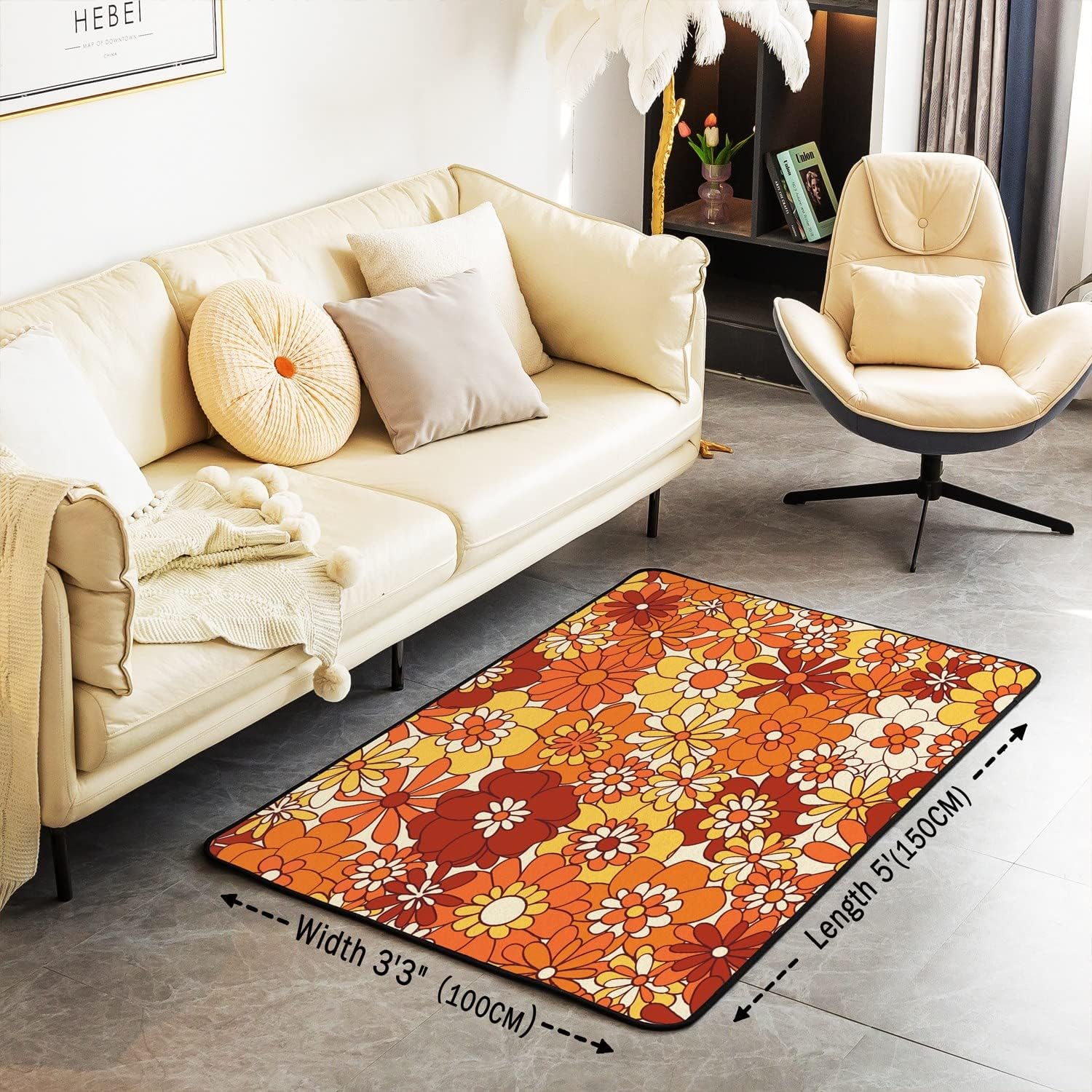 Groovy Flower Area Rug Retro Floral Boho Living Room Rugs for Bedroom Home Decor 70S Hippie Flowers Bohemian Carpet Ultra Soft Non-Slip Indoor Floor Mat 3'x5'