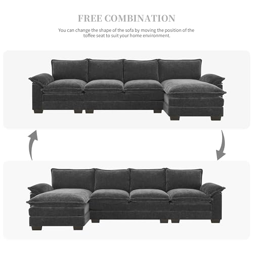 Deep Seat Convertible Modular Sectional Sofa with Reversible Chaise Lounge and 2 Layers Cushions, 5 Seater Chenille Upholstered Cloud Couch, L Shaped Corner Sofa&Couches for Living Room Furniture