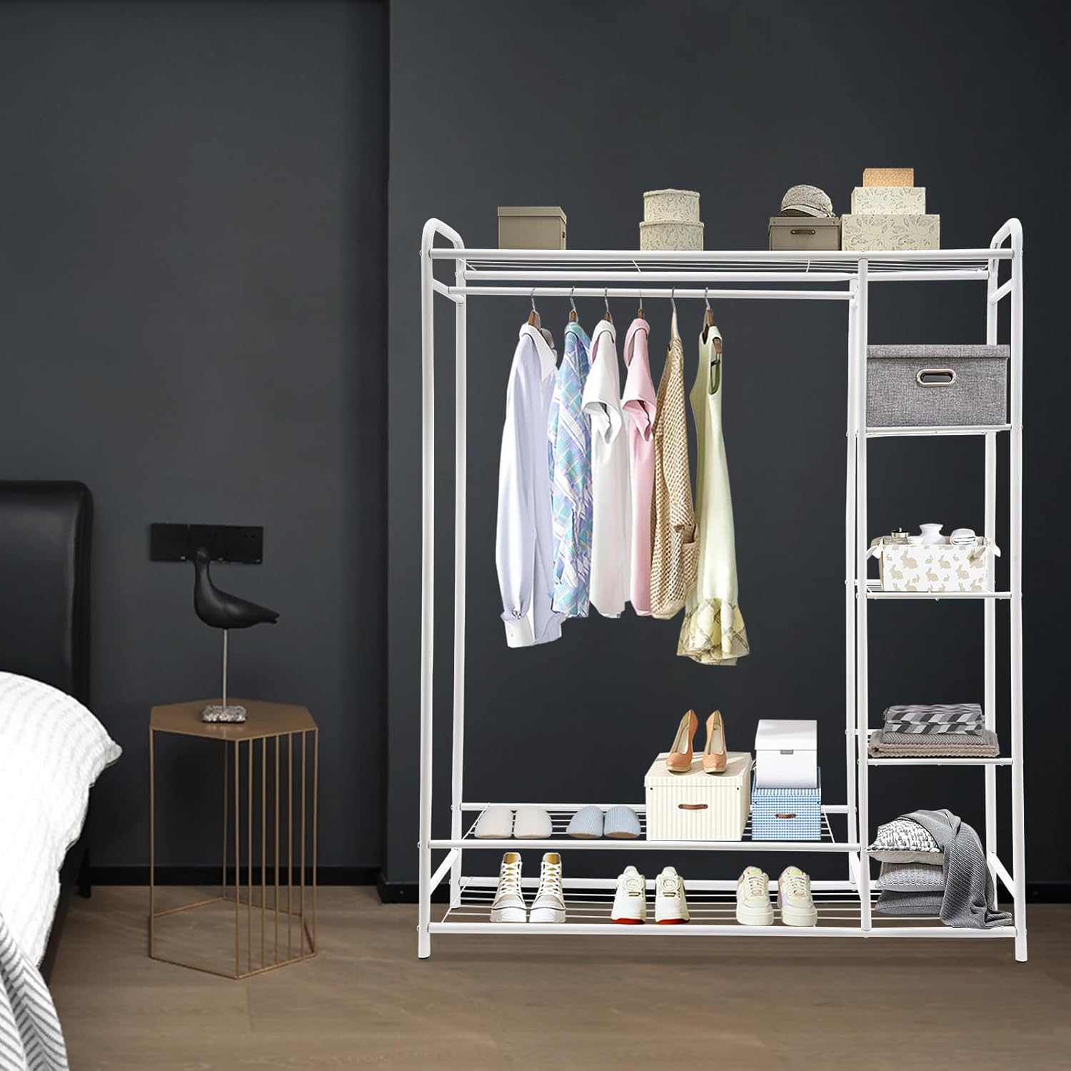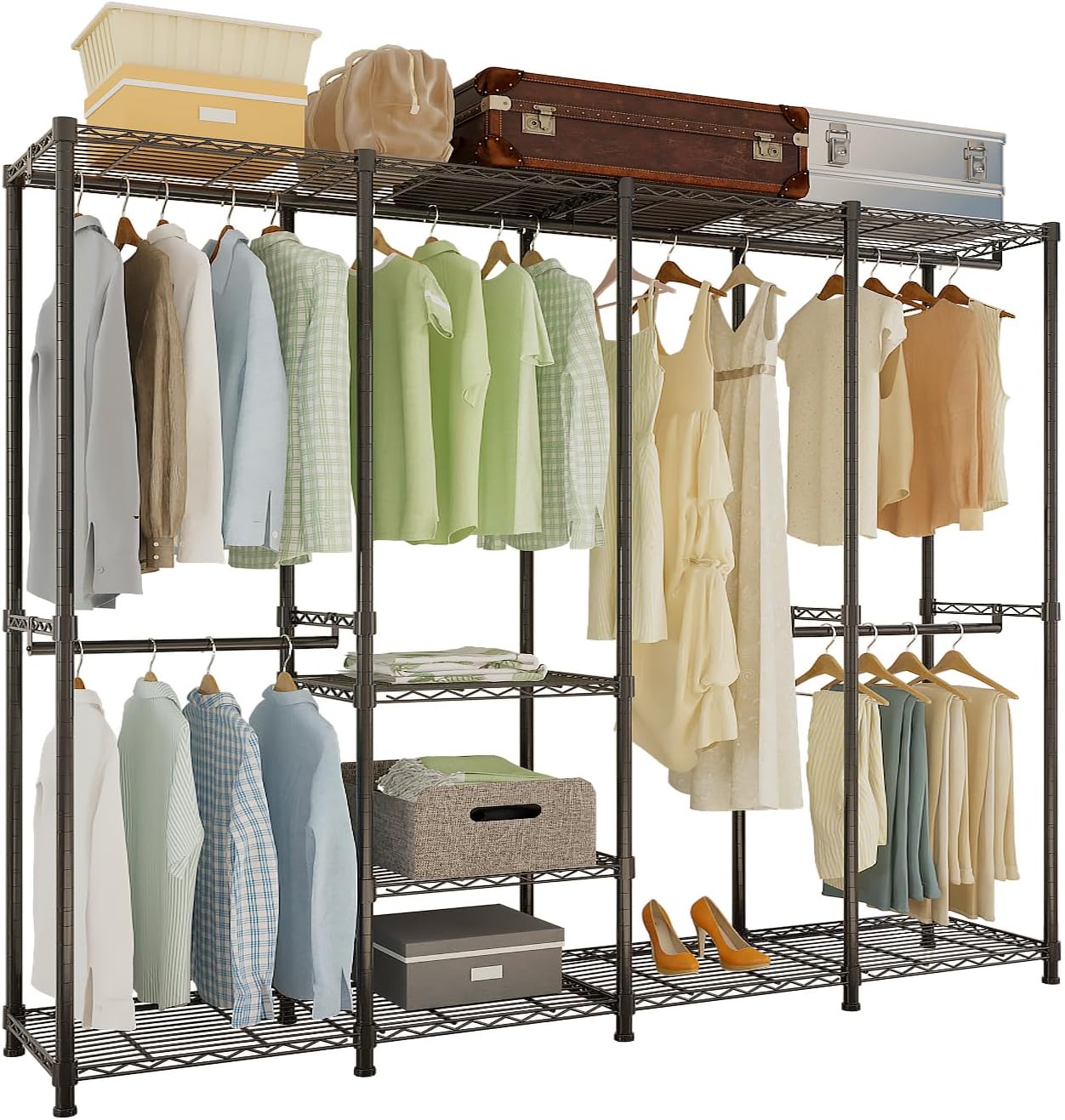 TFCFL 7-Tire Clothing Rack, Freestanding Wardrobe Closet Rack, 88LBS Portable Metal Clothes Storage Rack, for Hanging Clothes, for Bedroom, Closet Organizer