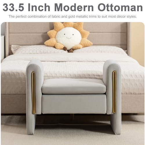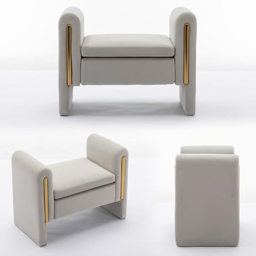 53 Inch Velvet Storage Ottoman vanity stool, Modern End of Bed Ottoman,Upholstered Entryway Ottoman,Upholstered Storage Cabinet for Living Room Bedroom (Ivory)