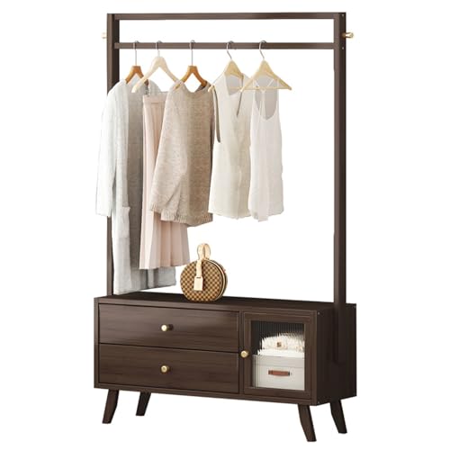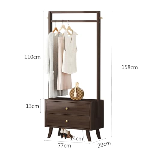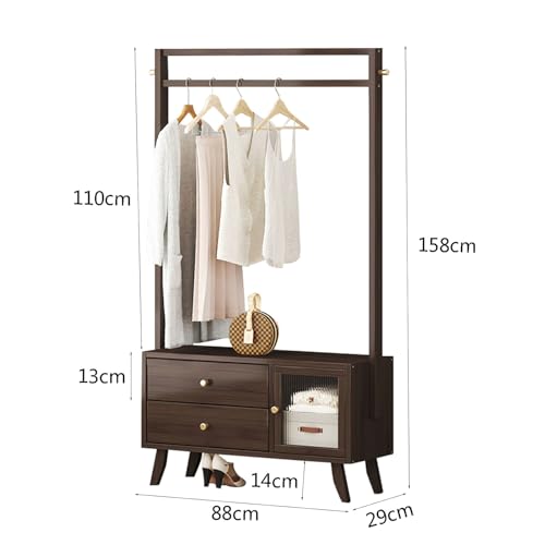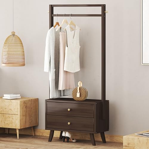 Clothes Rack with 2 Drawers, 158cm Clothing Rack with 1 Hanging Rods Wardrobe Closet Rack with 2 Hooks Freestanding Garment Rack for Hallway Entryway Coat Hanger Stand