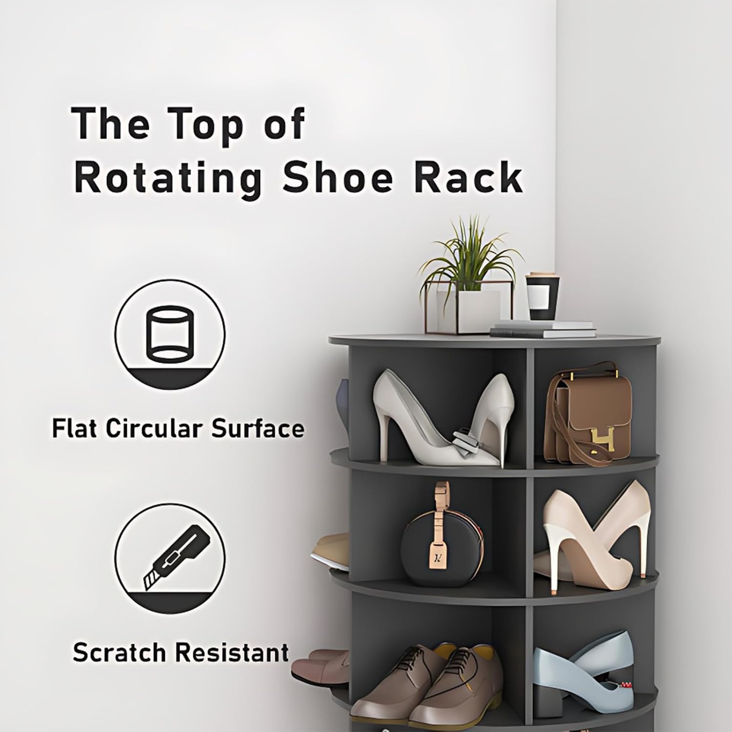 7 Tier Rotating Shoe Cabinet, Multifunctional Storage Revolving Shoe Rack Tower, 360°Open Free Standing Shoe Organizer, Shoe Display Lazy Susan (Grey)