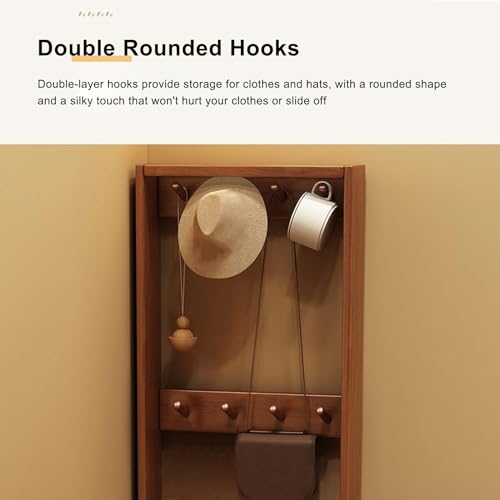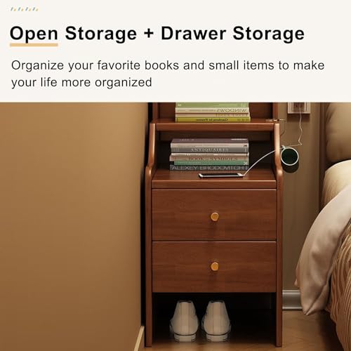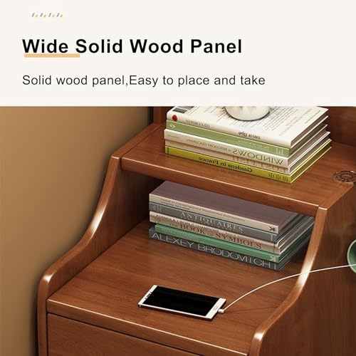 Bedroom Wooden Nightstand with Drawers Integrated Coat Rack, 17.72 Inch Freestanding Floor Tall Bedside End Table Night Stand with Open Clothes Storage Shelf for Bedroom Closet Entryway