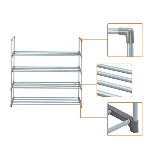 Metal Tube Free Standing Shoe Rack, Shoes Organizer Home Storage Shelves for Entryway Hallway Closet (Grey, 8-Tiers)