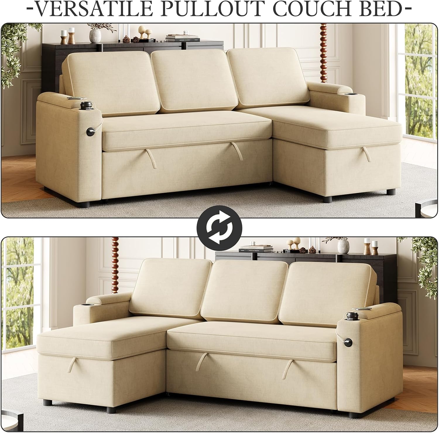 Convertible Sectional Sofa Couch,85.8"/217CM L-Shaped Sofa,Sleeper Sofa,2 in 1 Pull Out Sofa Bed with Storage Sofa,with Pull Out Bed with Charging Port