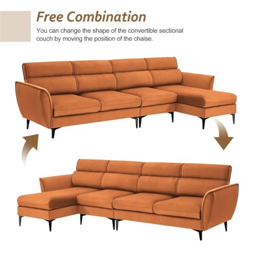 111" Convertible Sectional Sofa Couch, Flannel L Shape Furniture Couch with Chaise Left/Right Handed Chaise