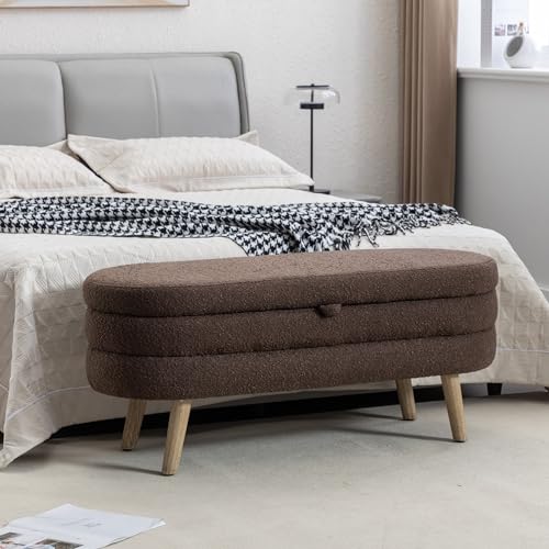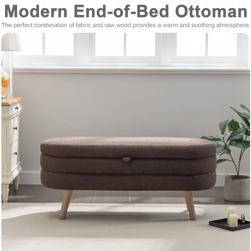 Storage Ottoman Bench for Bedroom end of Bed, Modern End-of-Bed Ottoman, Upholstered Entryway Ottoman with Wooden Legs, Upholstered Storage Cabinet for Living Room Bedroom (Black)