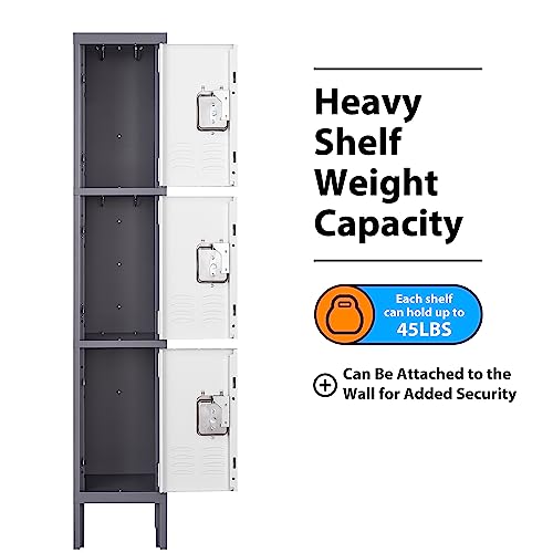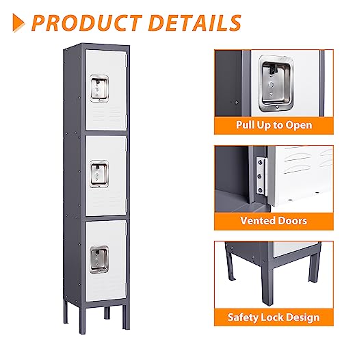 Metal Locker with 3 Doors Employees Locker, Metal Storage Locker with Hooks, 71" Storage Cabinet Lockers for Employees, Home, Office, Gym Requires Assembly (3 Doors, Grey)