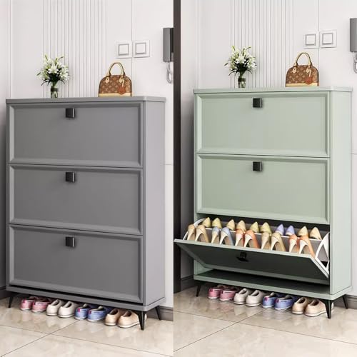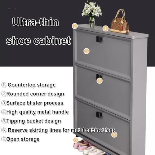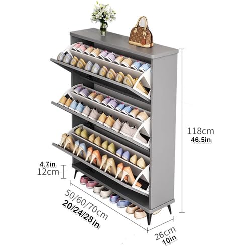 Shoe Cabinet with 3 Flip Drawers, Slim Shoe Storage Cabinet, Free Standing Hidden Narrow Shoe Rack Shoe Organizer for Entryway/Hallway/Closet(Gray,70 * 18 * 118cm)