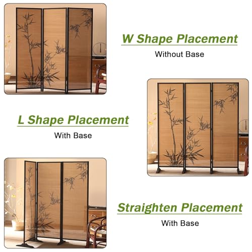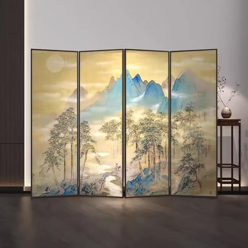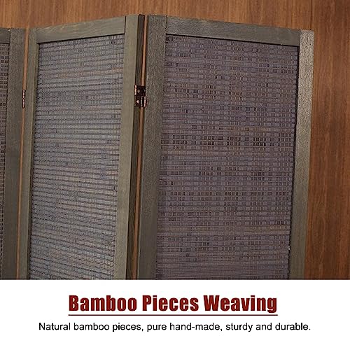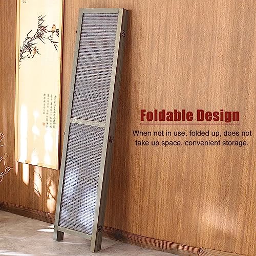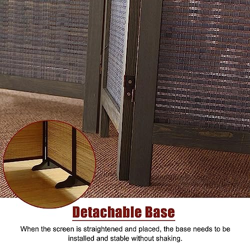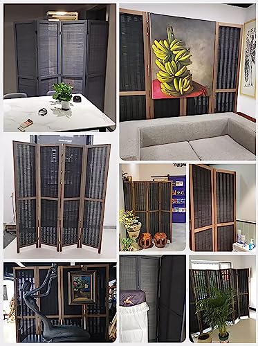Room Divider Privacy Screen Grey Room Divider Screen 4 Panels 6 feet High, Commercial Home Standing Door Partition with Base, for Teahouse/Dining Room/Lobby Backdrop Decor, Pine Wood Frame