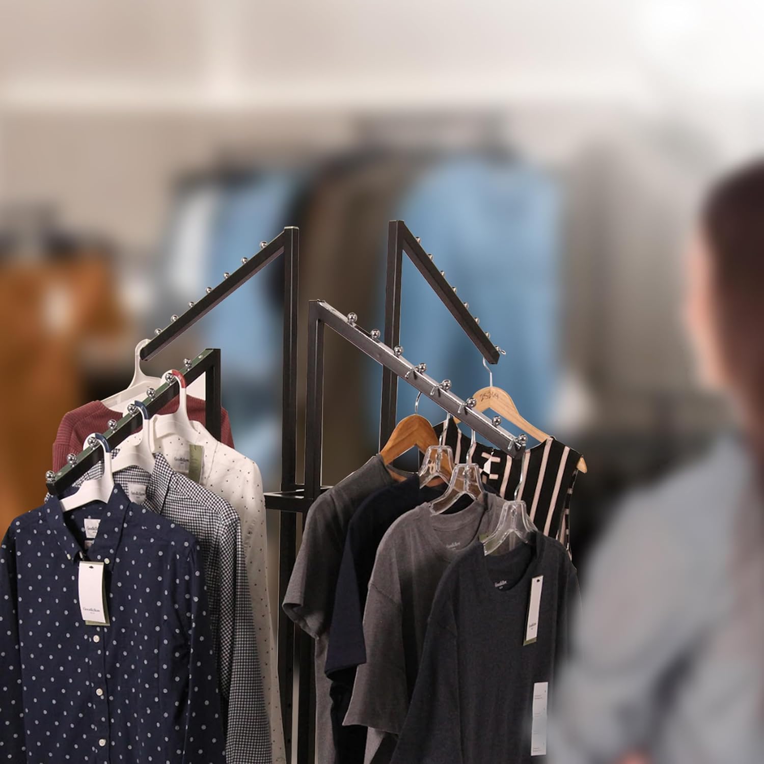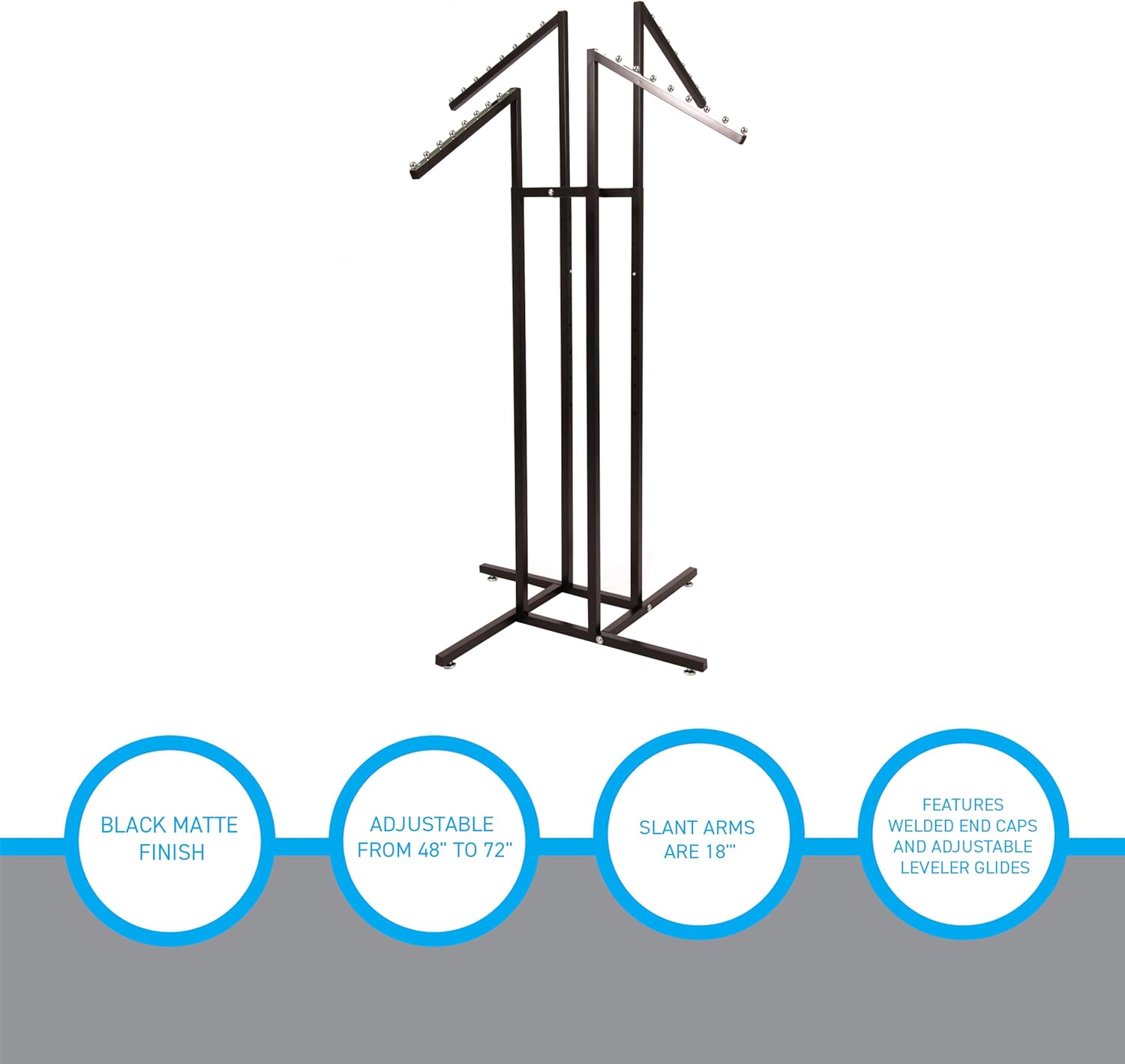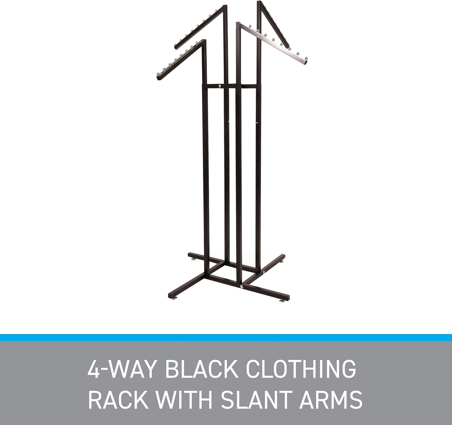 SSWBasics Black 4 Way Adjustable Clothing Rack with Slanted Arms - Retail Clothing Rack Display - Adjustable Height Arms from 48" to 72" Perfect for Clothing Stores