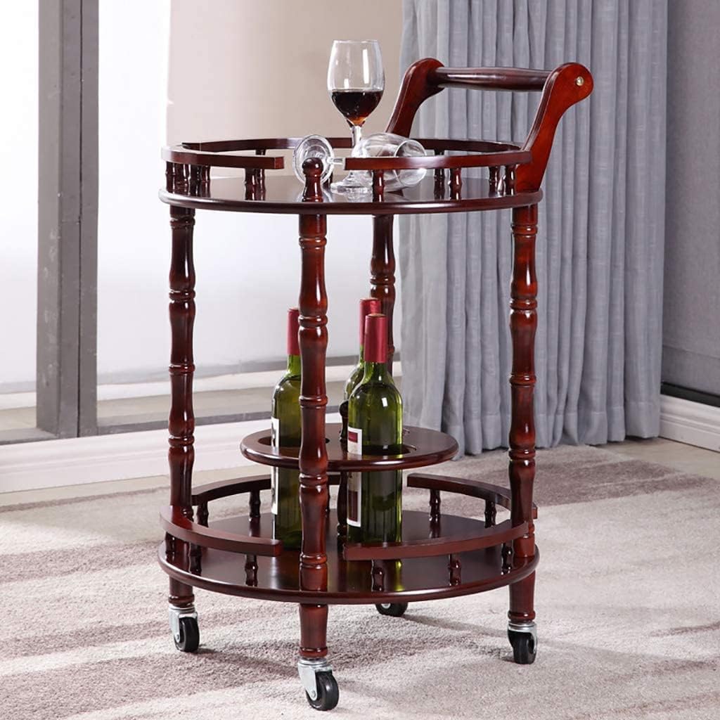 Rolling Serving Bar Cart Patio Kitchen for Party Serving Cart Island Cart Solid Wood Home Commercial 2-Tier Rolling Island Cart W/Wheels Handle Bottle Holder Guard Rails