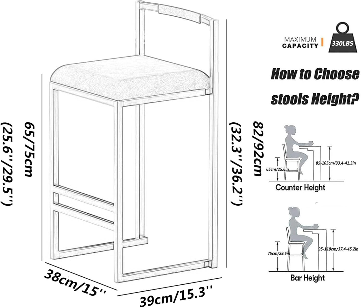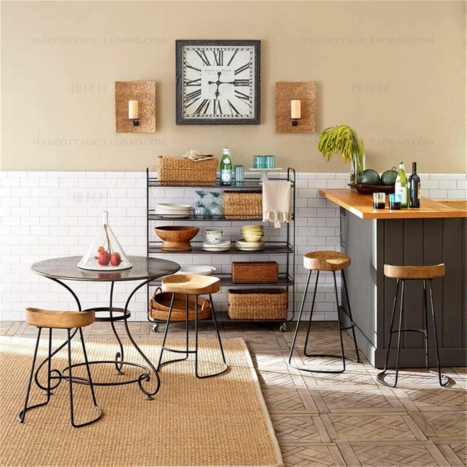Modern Counter Bar Stools for Kitchen Island, Barstool Wooden Iron Breakfast Dining Stool Ergonomic Seat for Kitchen Bar Counter Home Commercial Chair High Stool