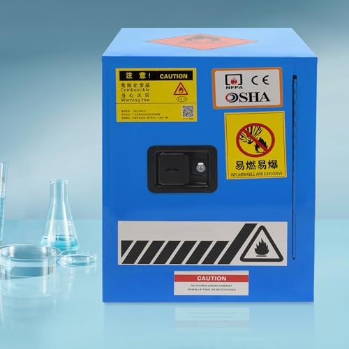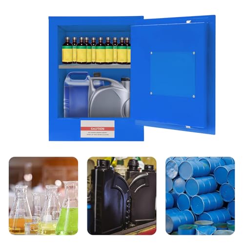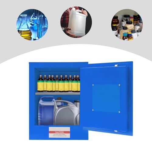 4 Gal Galvanized Steel Safety Cabinet with Locks, Adjustable Shelf Non-Flammable Storage Cabinet Hazardous Storage Cabinet Flammable Cabinet for Commercial Industrial and Home Use (Blue)
