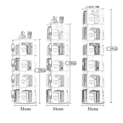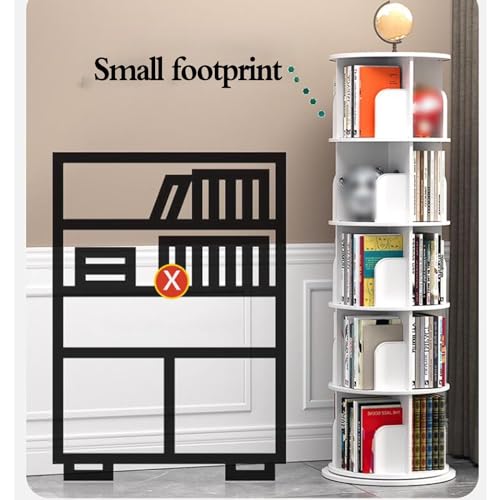 bookshelf 4/5/6 Layers Rotating Bookshelf Children's Reading Storage Rack Creative Home Commercial Bookcase Large Capacity Sofa Side Storage Bookshelf Small Footprint (Color : White, Size : 5 layers