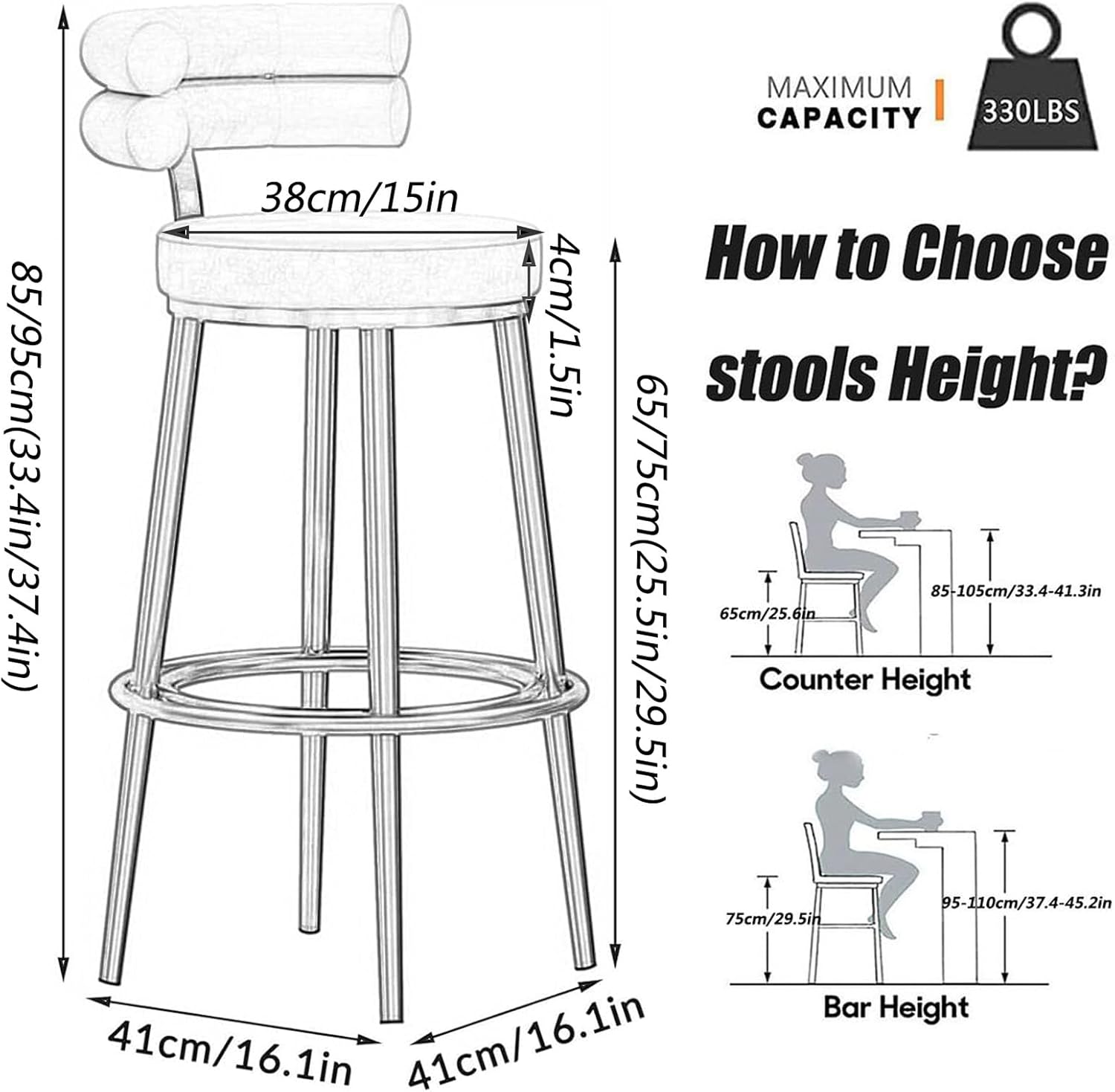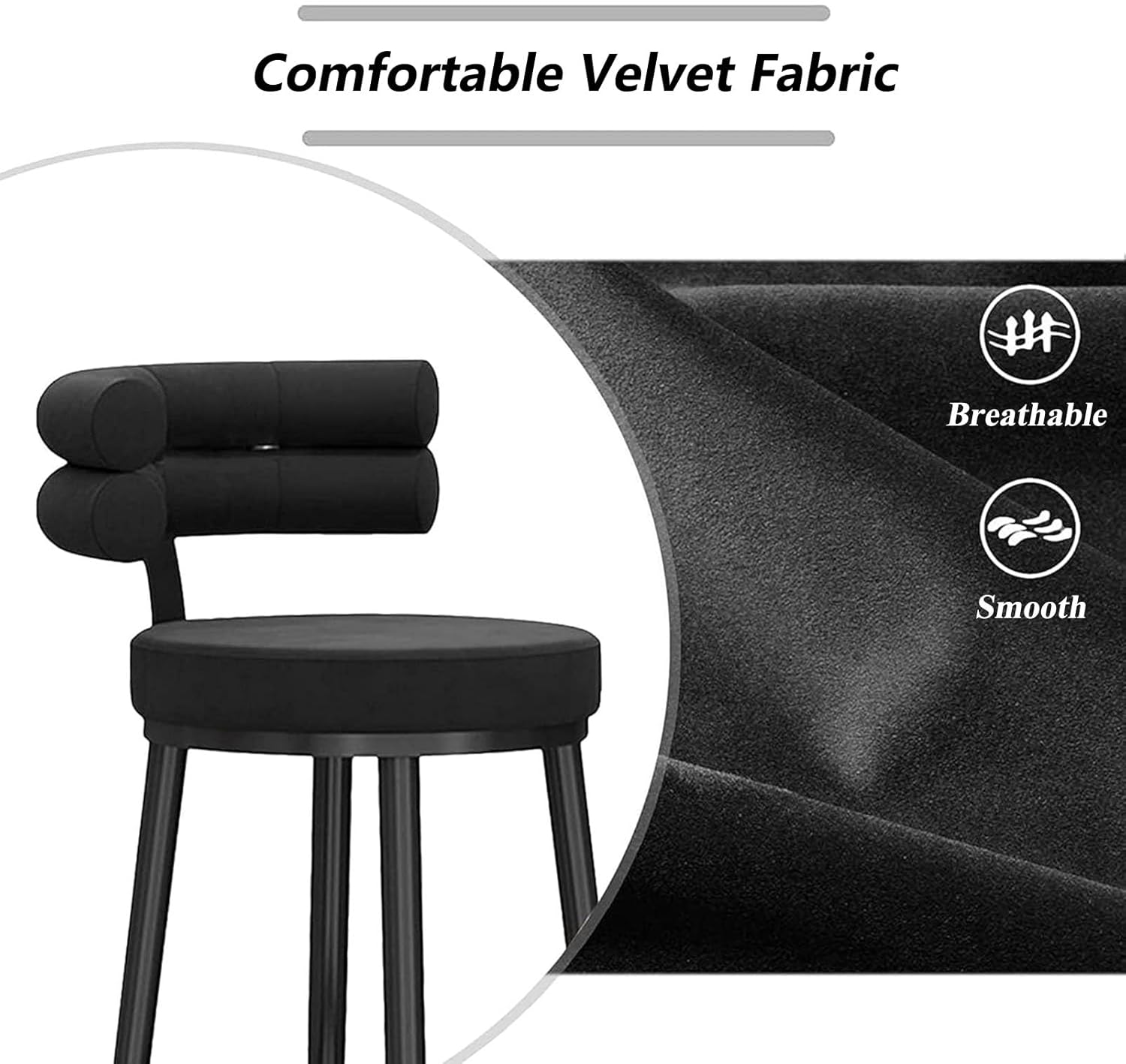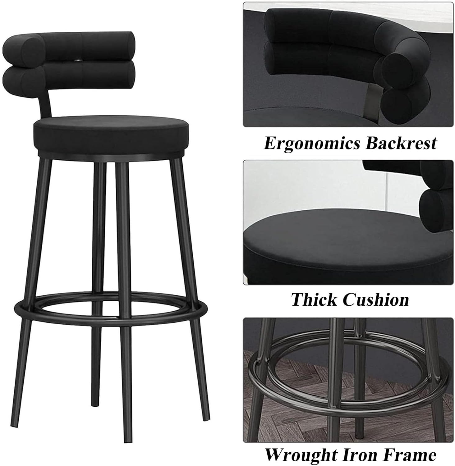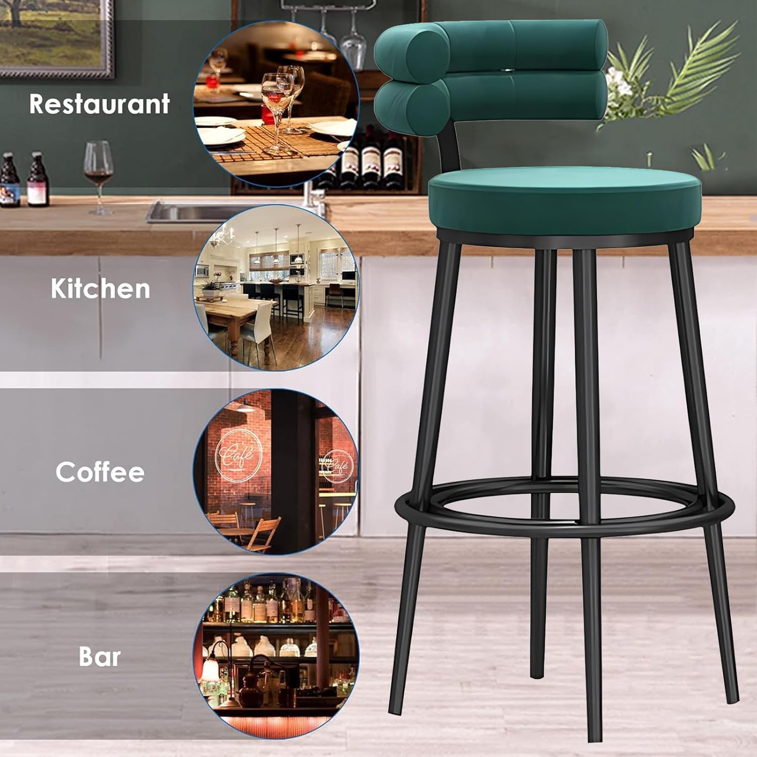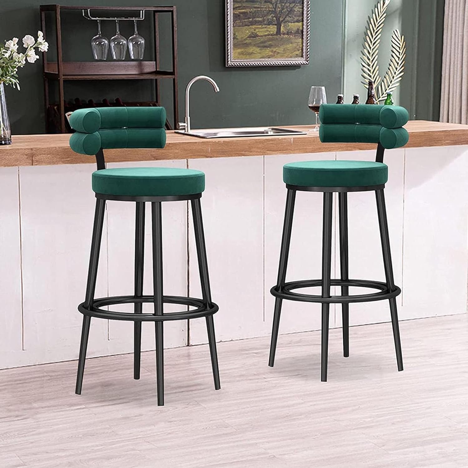 Bar Stools Kitchen Island Stools, Velvet Upholstered Breakfast Bar Chairs with Soft Backrest and Metal Legs, Counter High Dining Chair for Home & Commercial(Size:75cm,Color:Green)