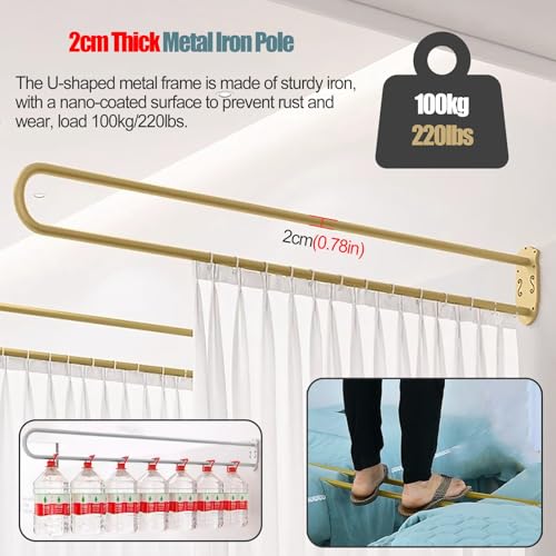 2 Pack Curtain Divider for Room Separation with Metal Pole, Home Commercial Partition Privacy Screen Fabric Curtains Panels, Beauty Bed Curtain Support Frame Pull Curtain(Beige,L 230cm/7.5ft)