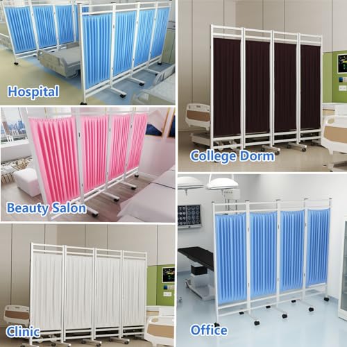 5 Panels Folding Privacy Screens - Freestanding Portable Partition - Room Dividers Wall with Lockable Wheels- 5.9ft Tall Wall Divider and Separator for Commercial, Home Use (Color : Blue, Size : 5 p