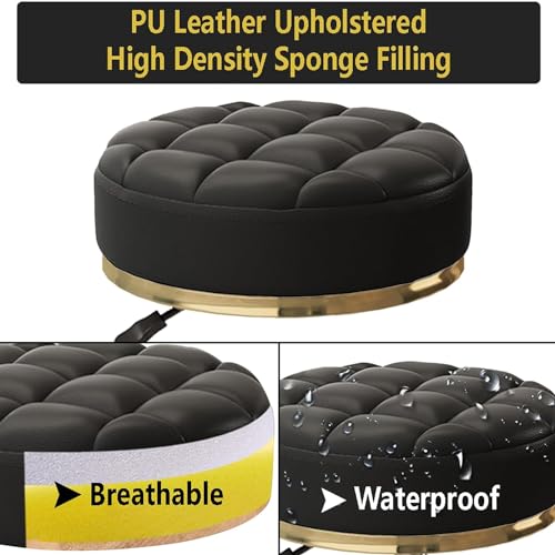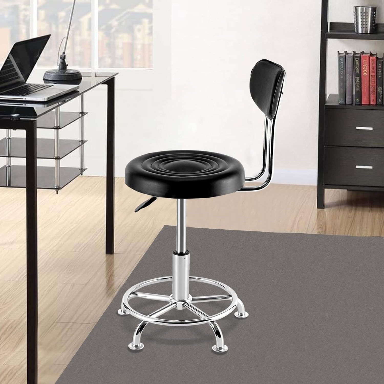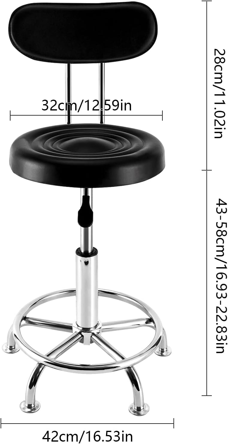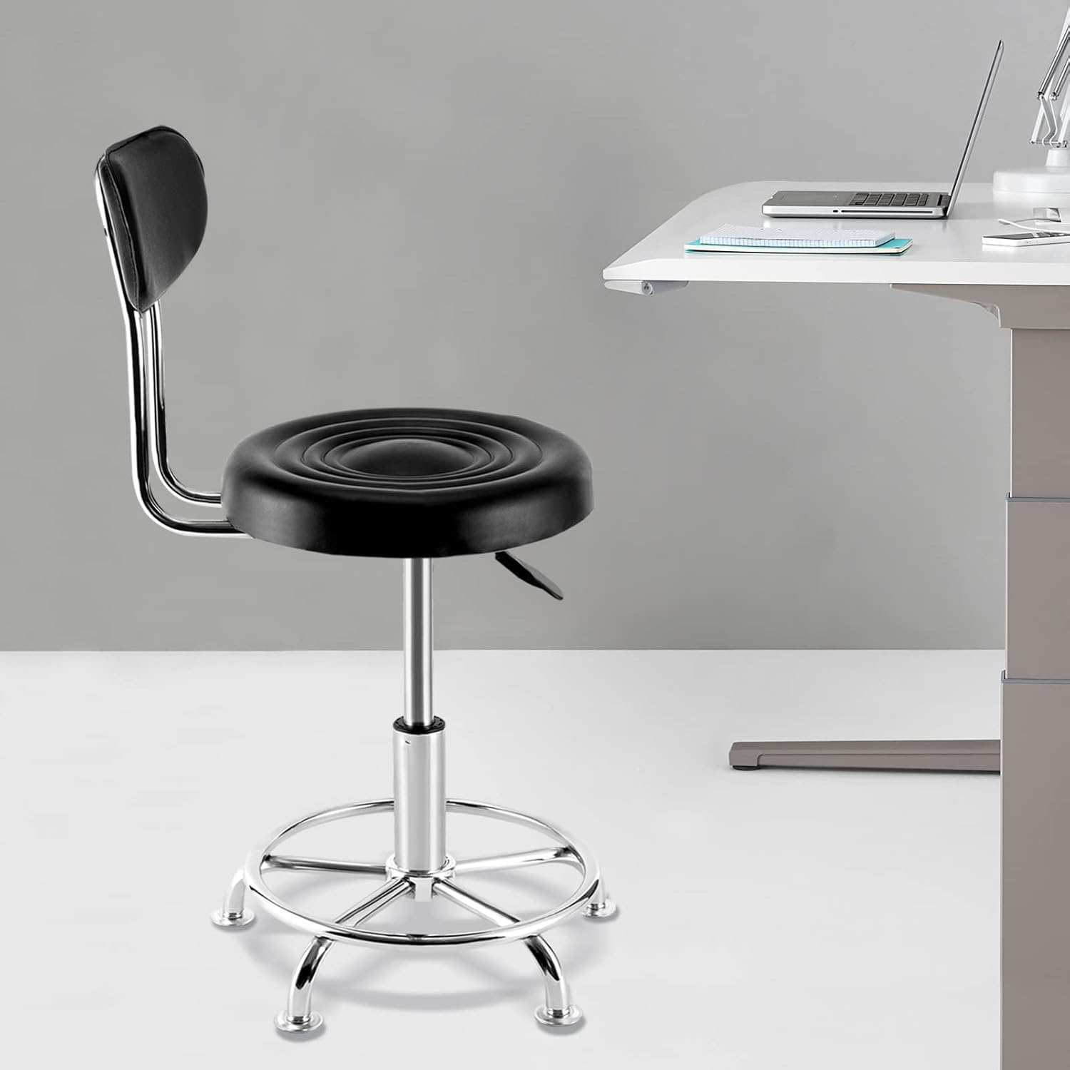 Swivel Stool Round Rolling Stool, Pu Leather Swivel Stool, Salon Stool, Adjustable Swivel Hydraulic Gas Lift Stool,Massage Chair with Back and Wheels Footrest,Black