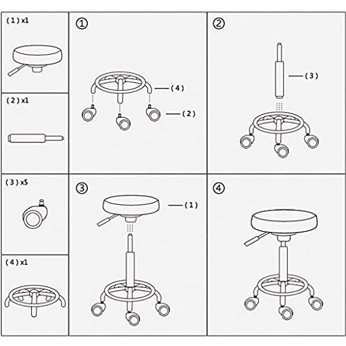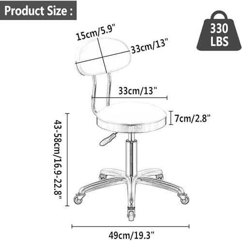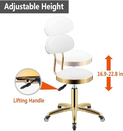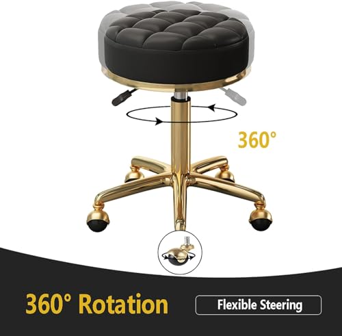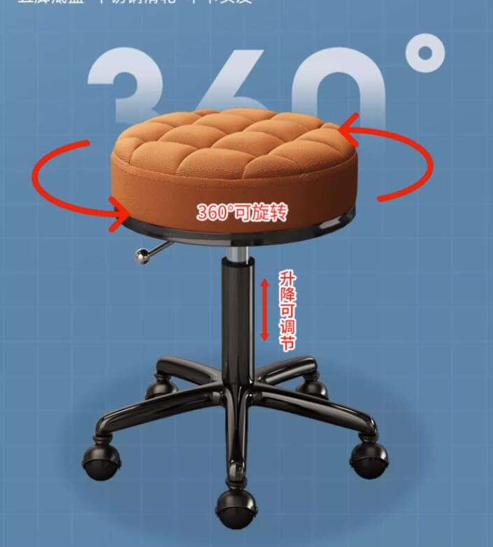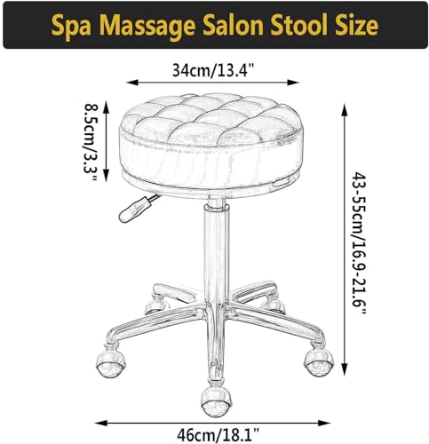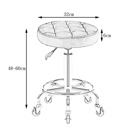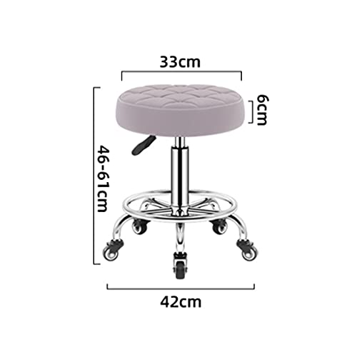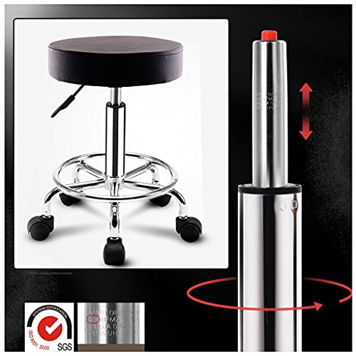 Round Rolling Stool Beauty Stools Chair Adjustable Height Chrome Steel Bar Stool Round Cushion, Salon Rolling Stool Swivel Chair On 5 Wheels, PU Leather Counter Stools Shop Work Stool with